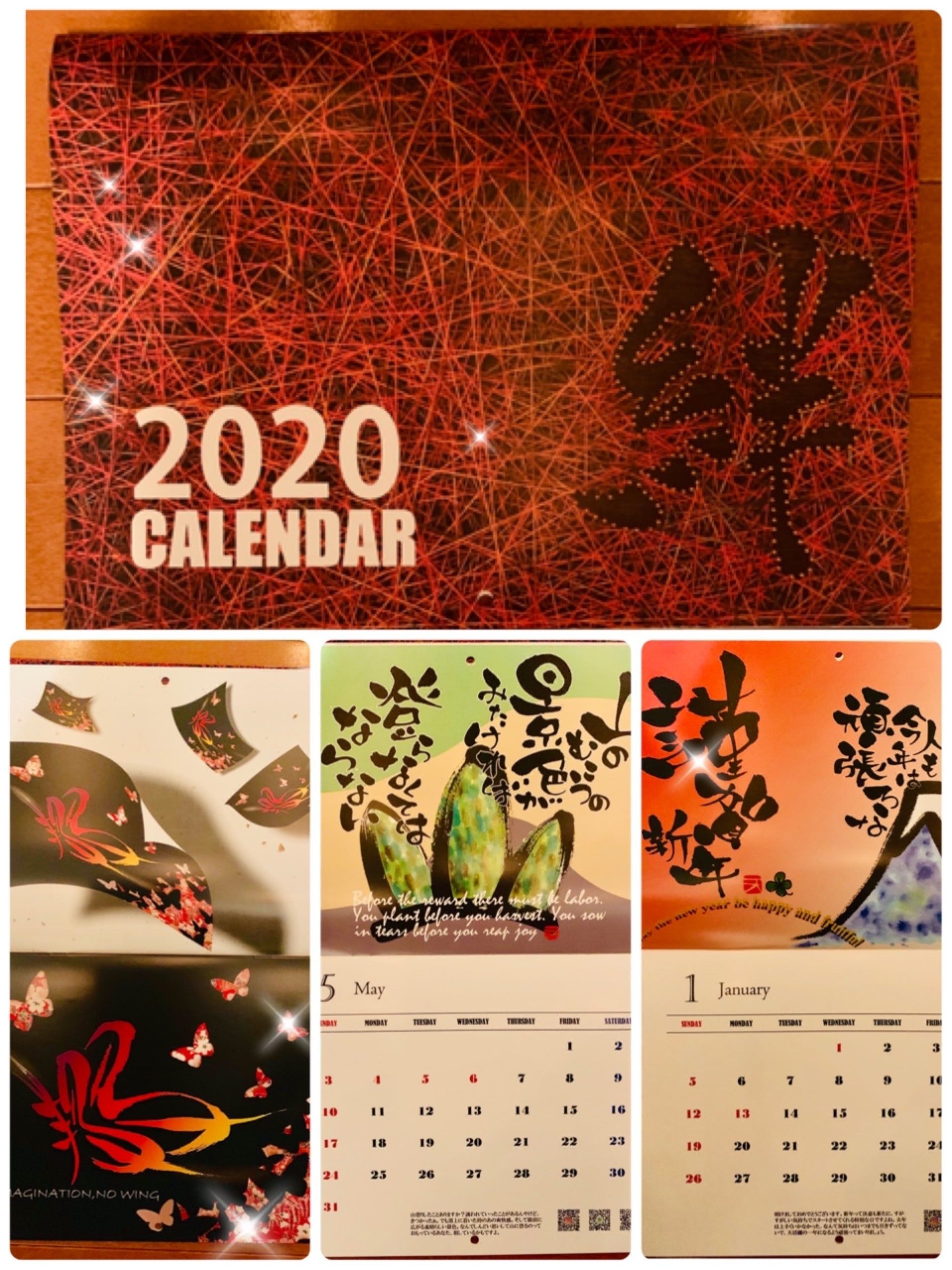 2021年メッセージ入りカレンダー(写真は2020カレンダーです。カレンダーの余白にあなたから頂いた言葉を筆文字で書きます。)
