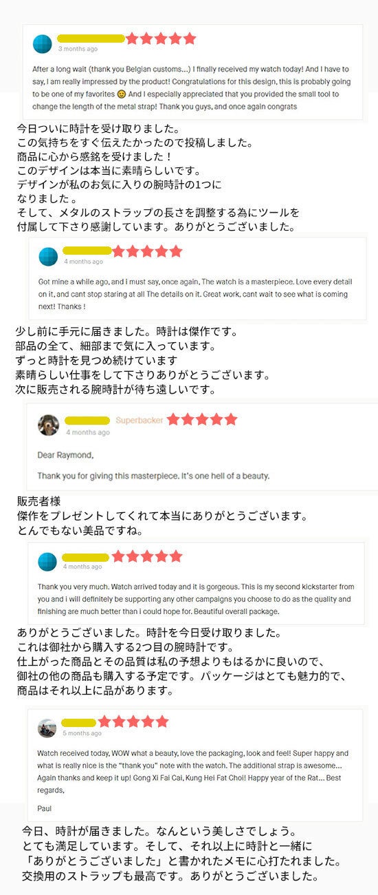 2021/09/15 21:29ご覧頂きありがとうございます。https://camp-fire.jp/projects/view/458149新しいモデル、CaliburnusIIは確認しましたか?パワーリザーブも60時間とグレードアップ!宝石のひとつであるオパールを日本で管理培養したものを文字盤に使用しました。WEBメディア GIZMODO様にご紹介頂きました。-----着ければまるで勇者気分? 聖剣の名を冠する機械式ウォッチ「Caliburnus」を装着してみた!悠久の時を刻もうではないか!そんなセリフをつい口ずさみたくなる機械式腕時計「Caliburnus(カリブルヌス)」が姉妹サイトmachi-yaに登場していました。クリスタルのように煌めくオパールの文字盤や聖剣エクスカリバーの原典を製品名に用いるなど、ドラクエやFFなどの名作ゲームに夢中になった皆さんなら心をくすぐられるのではないでしょうか。ロマン溢れる時計にしあがっているのか、実際にサンプルをお借りして使ってみた感想をお届けします!ぜひご確認下さい。記事はこちらhttps://www.gizmodo.jp/2021/09/machi-ya-caliburnus-review.html もっと見る
