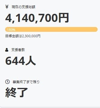 ご存知のように、当プロジェクトはわずか30日間の間に4,140,700円 ものご支援を頂き、昨日(2020年10月8日23時59分)成功裏に終了いたしました。