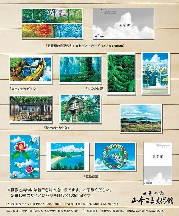 こんにちは。本日も皆さま、ありがとうございます!ここでは、リターンのご紹介をしていこうと思います。①「五島の雲 山本二三美術館」のグッズである、定番10種ポストカードのあるセットです。「天空の城ラピュタ」が1種、「もののけ姫」が2種、「時をかける少女」が3種、これらの人気作に加え、山本二三さんのライフワークである「五島百景」が4種のセットです。はがきの裏面には「二三雲」が淡くデザインされています。限定デザインのペアチケットがついて、3000円のコースです。続きまして、②クリアファイル4種のあるセットです。すべてA4サイズの書類が入るクリアファイルで、天空の城ラピュタ、もののけ姫、 時をかける少女、天気の子と、人気作品がセットになったものです。裏面は透明になっており、山本二三美術館ロゴと、椿があしらってあります。限定デザインのペアチケットがついて、3000円のコースです。次はこちら、③定番10種ポストカード+4種クリアファイルの入ったセットです。ポストカード定番10種クリアファイル4種上でご紹介した①、②のグッズが、全部セットになったものです。山本二三美術館のグッズを広く網羅することができる組み合わせとなっています。さらに、限定デザインのペアチケットがついて、5000円のコースです。 次にご紹介するのは、④山本二三さんのサイン入り図録に加え、①~③のすべての山本二三美術館のグッズが含まれているセットです。こちらは、一番最初にご紹介した①の定番10種に加え、大判の「菩提樹の春夏秋冬」を加えた合計11種のポストカードセットとなっています。大判ポストカードの裏面は、大判の二三雲となっています。封書と同じく84円の切手を貼って送ることができますよ。どの季節の時候のお便りにも使えるのがよいですね。こちらの展覧会図録は、『未来少年コナン』から『天空の城ラピュタ』『火垂の墓』『もののけ姫』『時をかける少女』から近年の作品まで、多彩な背景画やイメージボード等約190点を収録しています。二三さんのサイン入り 展覧会図録解説やインタビューも掲載されています。中でも“片観音開き” で見る作品たちはとても迫力があり、大きな特長となっています。こちらにも、限定デザインのペアチケットがついて、8000円のコースです。クラウドファンディング限定デザインのペアチケット※こちらのチケットは10月8日(木)までの本プロジェクト終了後に発送します。展覧会は9月19日(土)~11月15日(日)までですので、本チケットを使っての入館は後半1か月程度のご利用となります。十分ご注意ください。次回は「リターンの紹介②」でお会いしましょう!