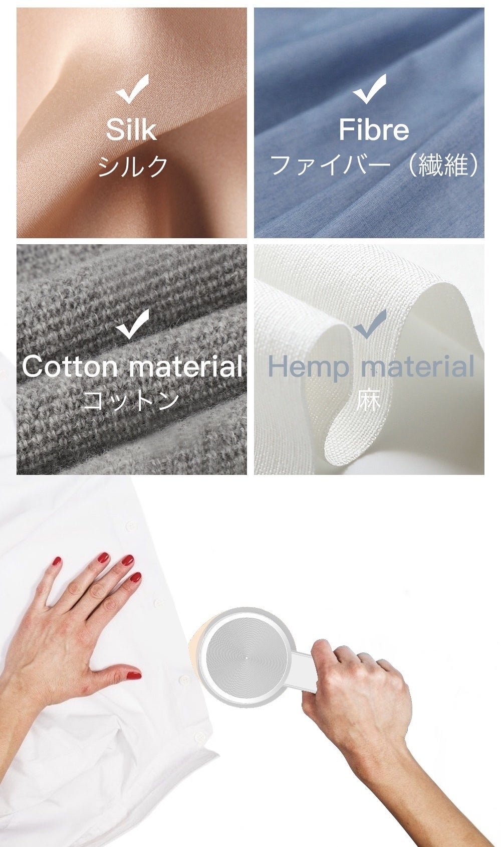シルク、ファイバー(繊維)、コットン、麻などに対応しており、最高160度の安定したヒーティングで、衣類をよりスムーズな肌触りに仕上げてくれます。