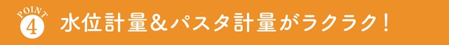 取っ手穴でロングパスタ200gのパスタを計ることが出来ます。
