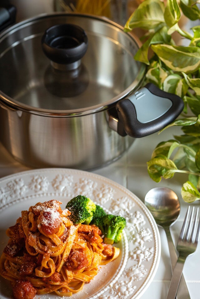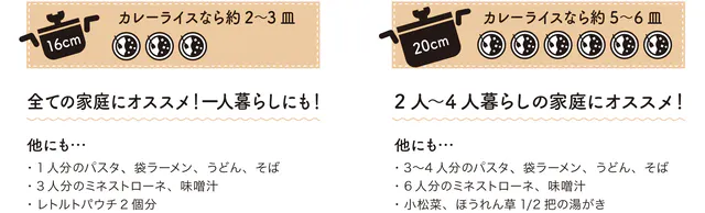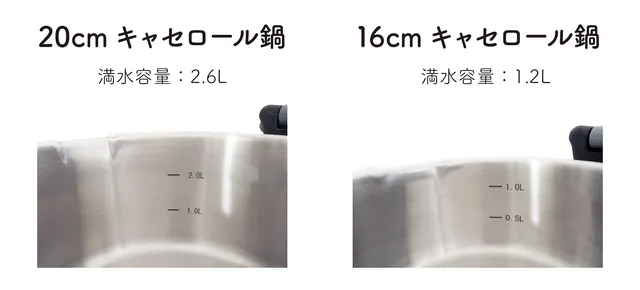 鍋の内側に水位線があるので計量もらくらく♪