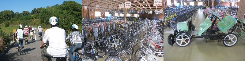 公園内のサイクリングロードは、1周12.3キロメートルの健脚コースと、家族で楽しめるファミリーコースA・B・Cがあります。レンタサイクルは、ロードレーサー・子供乗せ付軽快車・マウンテンバイク・子供車(コロ付あり)・おもしろ自転車など充実しています。持ち込み自転車もOKです。