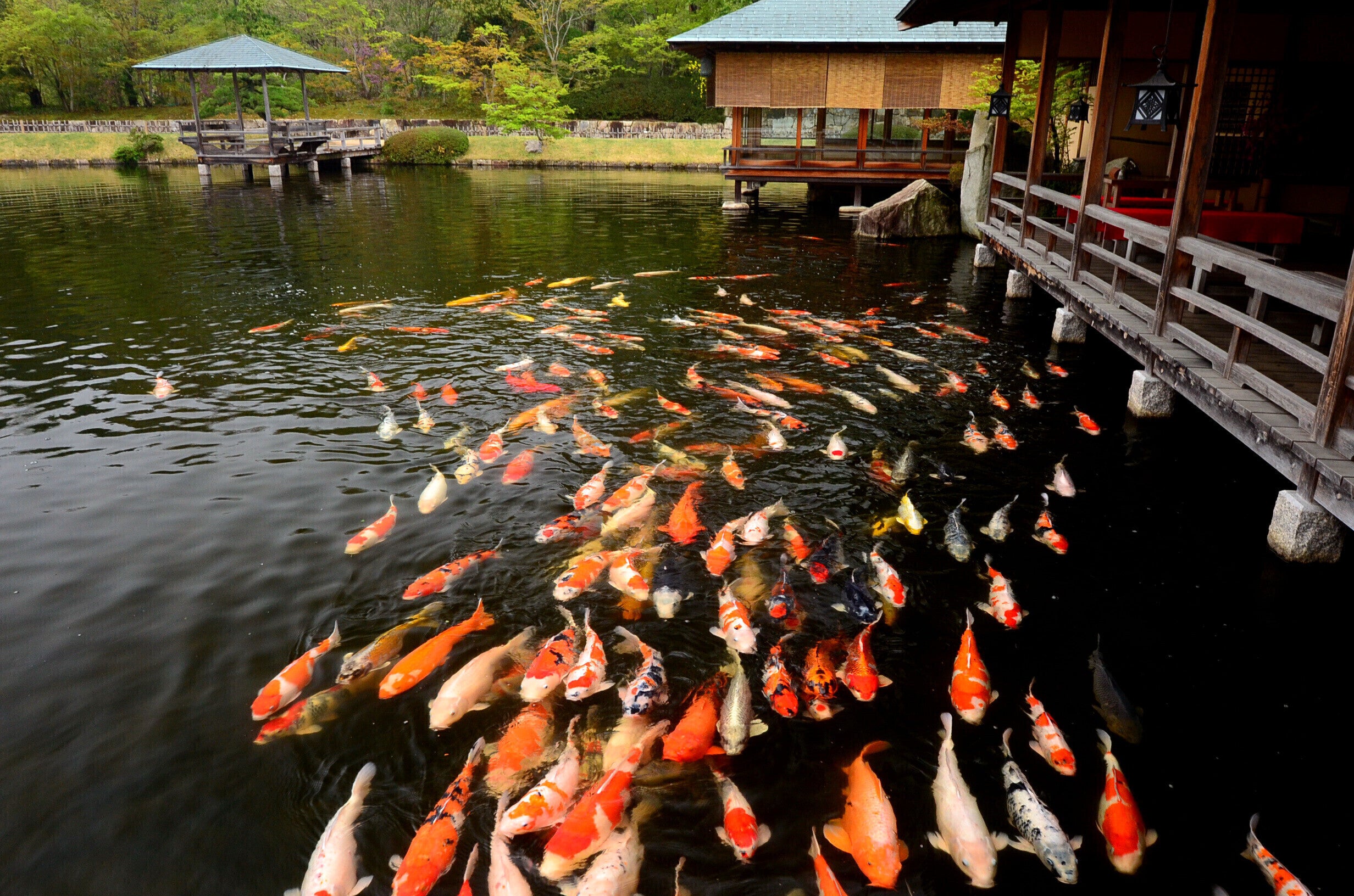 まず正門から入り、回廊から視線をまっすぐ奥へやると、鮮やかなモミジのグラデーションと、それを静かに水面に映す”大海”が出迎えます。園内には全体で約600本のモミジがありますが、人気の観賞スポットは、”三段の滝”から”もみじ谷”にかけて多くあります。