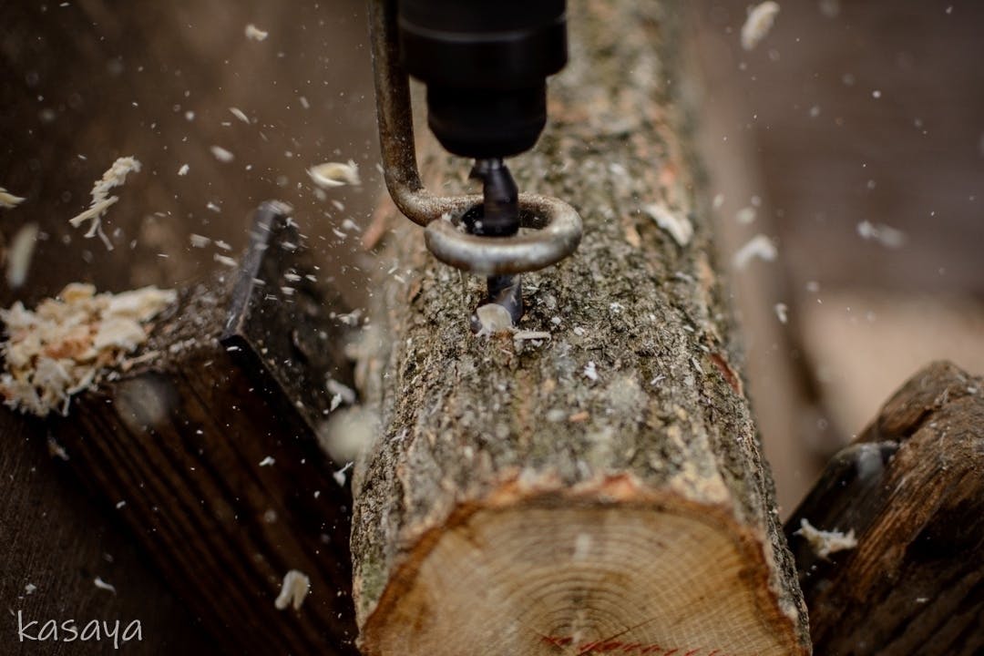 冬場に原木に穴をあけ、手作業で菌を入れ、それから1年以上寝かして初めて菌が木にまわり、