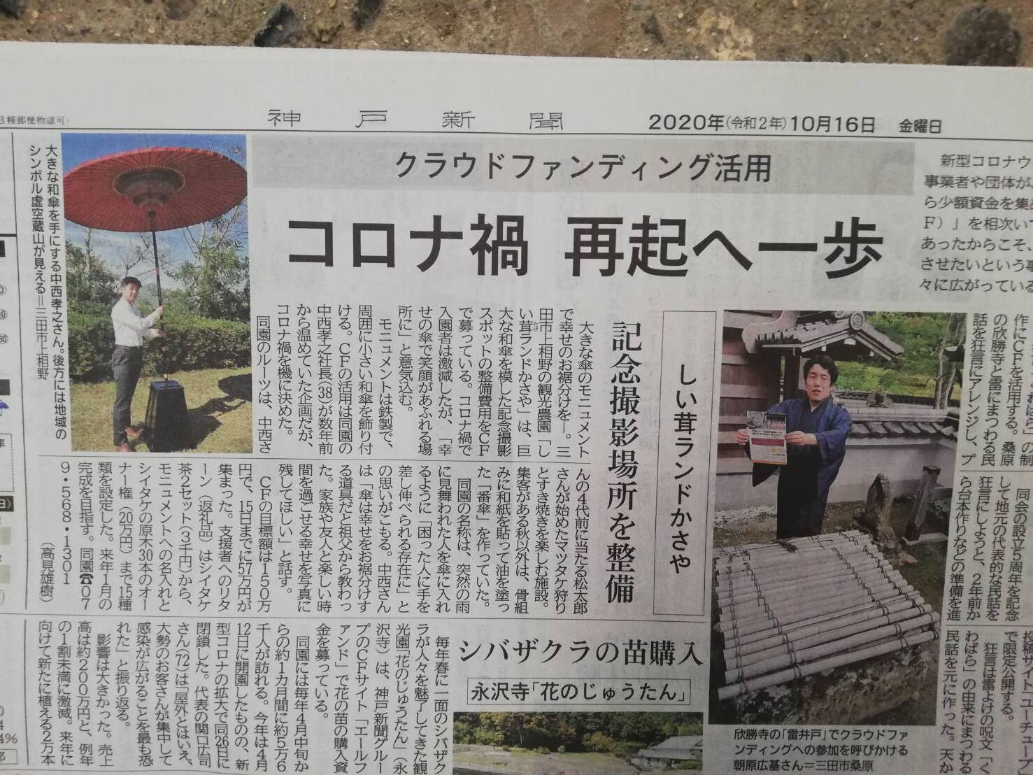 三田市でクラウドファンディングに取り組んでいる3社を地元神戸新聞さんが記事にしてくれました。