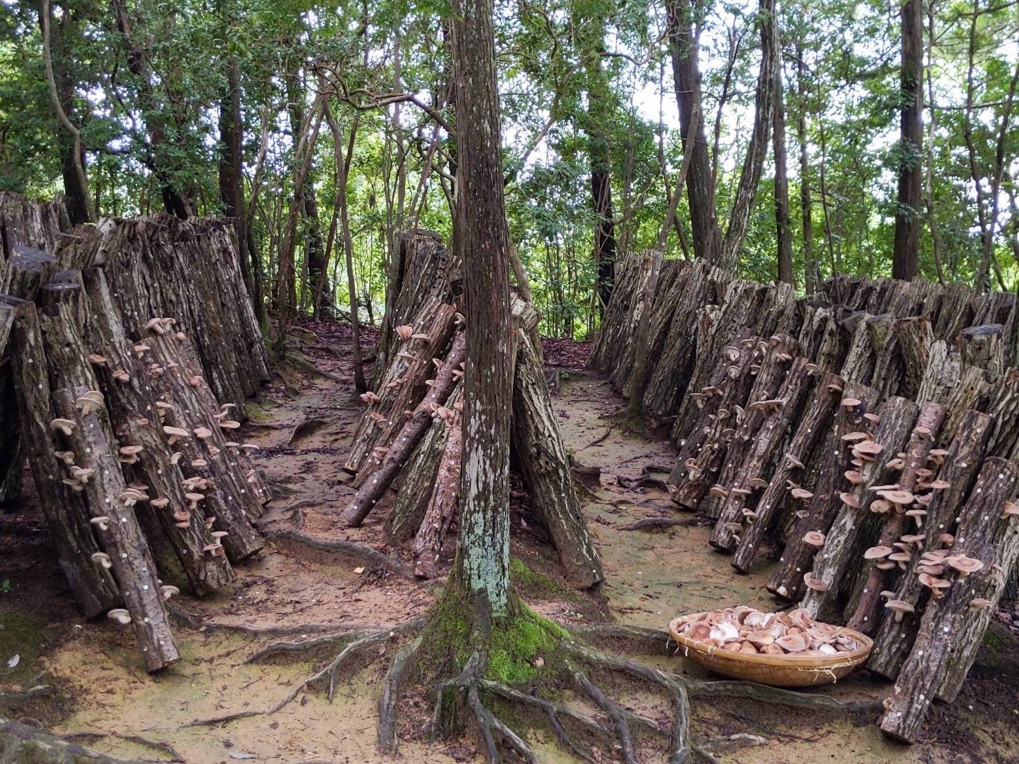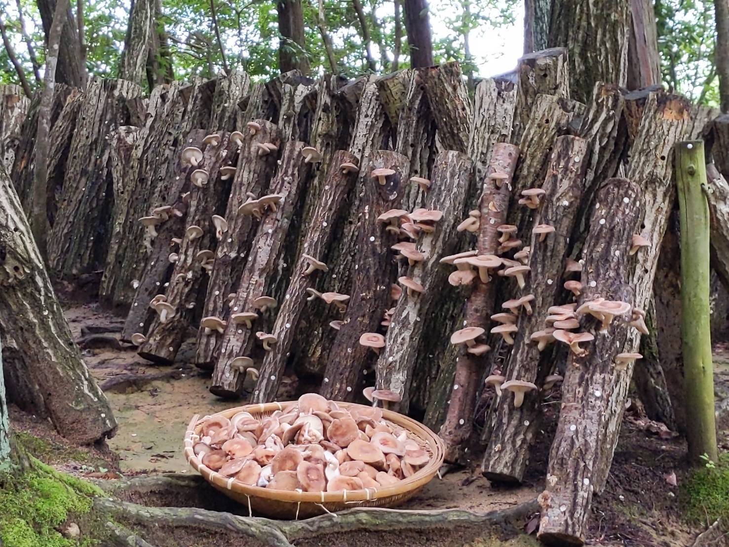 収穫時期は年二回で収穫体験もしくは椎茸の発送も可能。