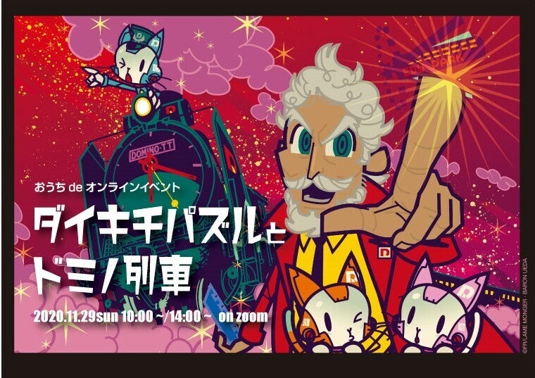 おうちdeオンラインイベント「ダイキチパズルとドミノ列車〜スペースコロニー編〜」<開催概要>ダイキチパズルとドミノ列車の開催概要が固まりましたので、お知らせいたします!子供たちを中心に家族みんなで楽しめるイベントとなっておりますので、たくさんの皆様のご参加をお待ちしております!引き続きのご支援をどうぞよろしくお願いいたします。◎開催日時:11月29日(日)に2回開催いたします。【午前の部】10:00~12:00(9:30 ZOOM受付開始) 参加者数の上限250名【午後の部】14:00~16:00(9:30 ZOOM受付開始) 参加者数の上限250名※最低施行人数 午前の部・午後の部とも1名より施行◎申込方法:クラウドファンディングcamp-fireのリターン品からお申込みください。※午前の部に参加希望の方は、3000円応援コース(A)をご支援願います。※午後の部に参加希望の方は、3000円応援コース(B)をご支援願います。◎お申込み後の流れ ①11月21日以降、開催日前日までにご支援時にご連絡いただきました送付先住所に「ダイキチドミノパズルセット」をお送りいたします。ピースは全て消毒済みのため、安心してお使いください。 ②「ダイキチドミノパズルセット」の箱の中にLINEグループのQRコードを入れておりますので、前日までにご参加ください。③開催日前日までにご指定のメールアドレスにZOOMのログインURLお送りいたします。当日はイベントの開始時間までにご入室ください。<お問い合わせ>「ダイキチパズルとドミノ列車」運営事務局 電話:06-6125-5581(キャリアンヌ内)共催/ダイキチレントオール株式会社、株式会社イング、株式会社キャリアンヌ