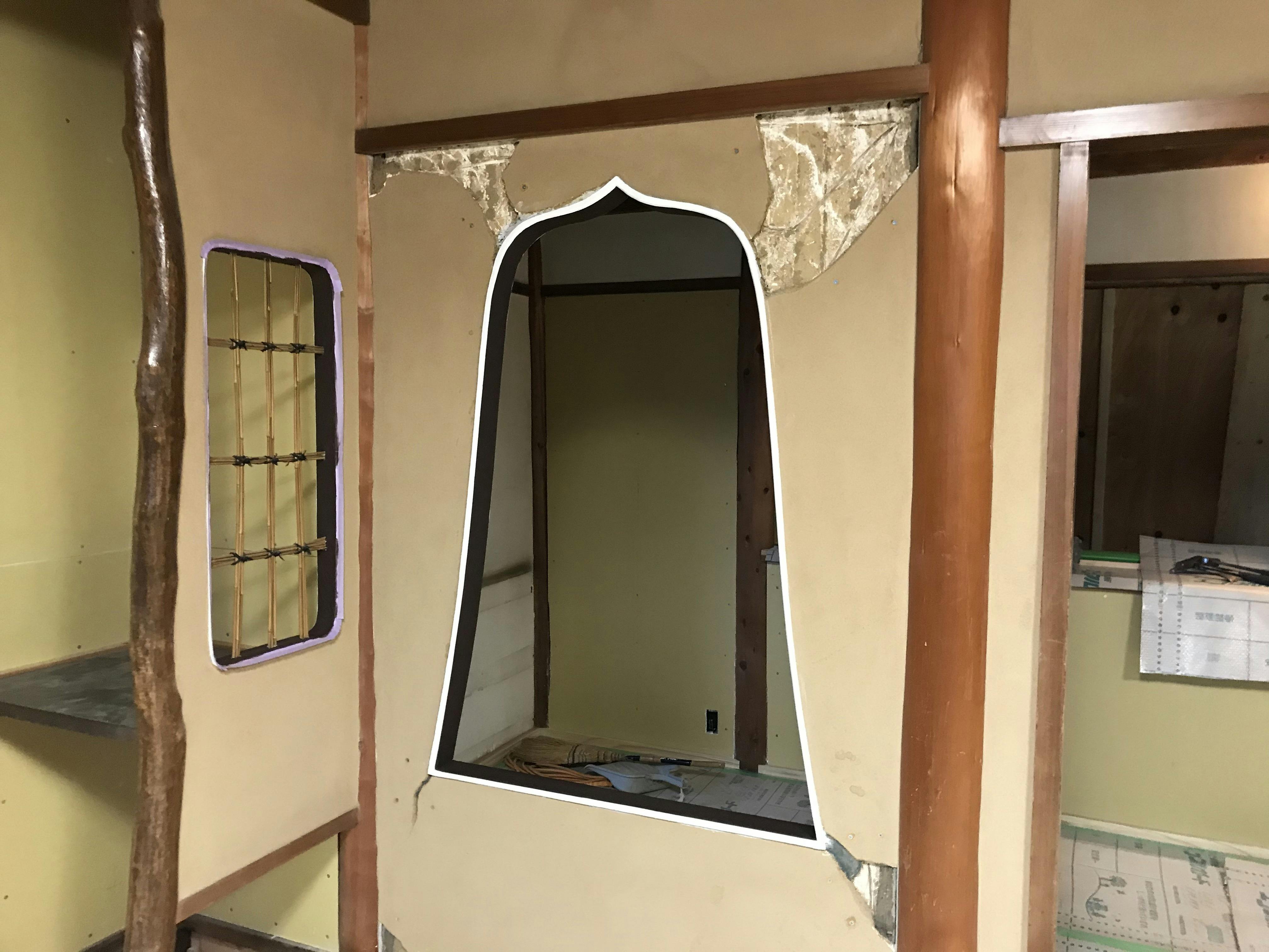 今週より左官工事に入り、ボロボロだった壁が修繕されていきます。