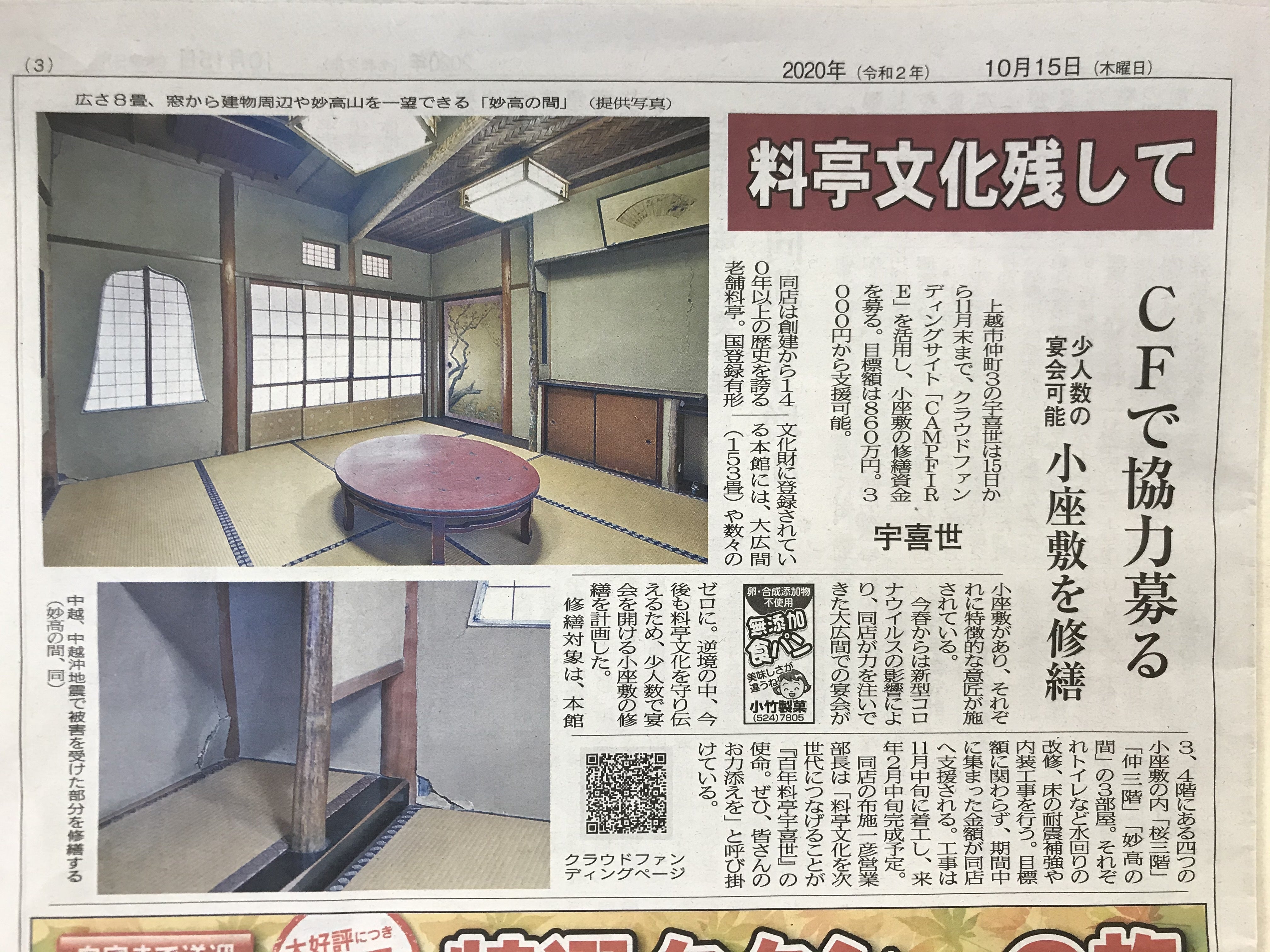 上越タイムス 記事(10月15日)