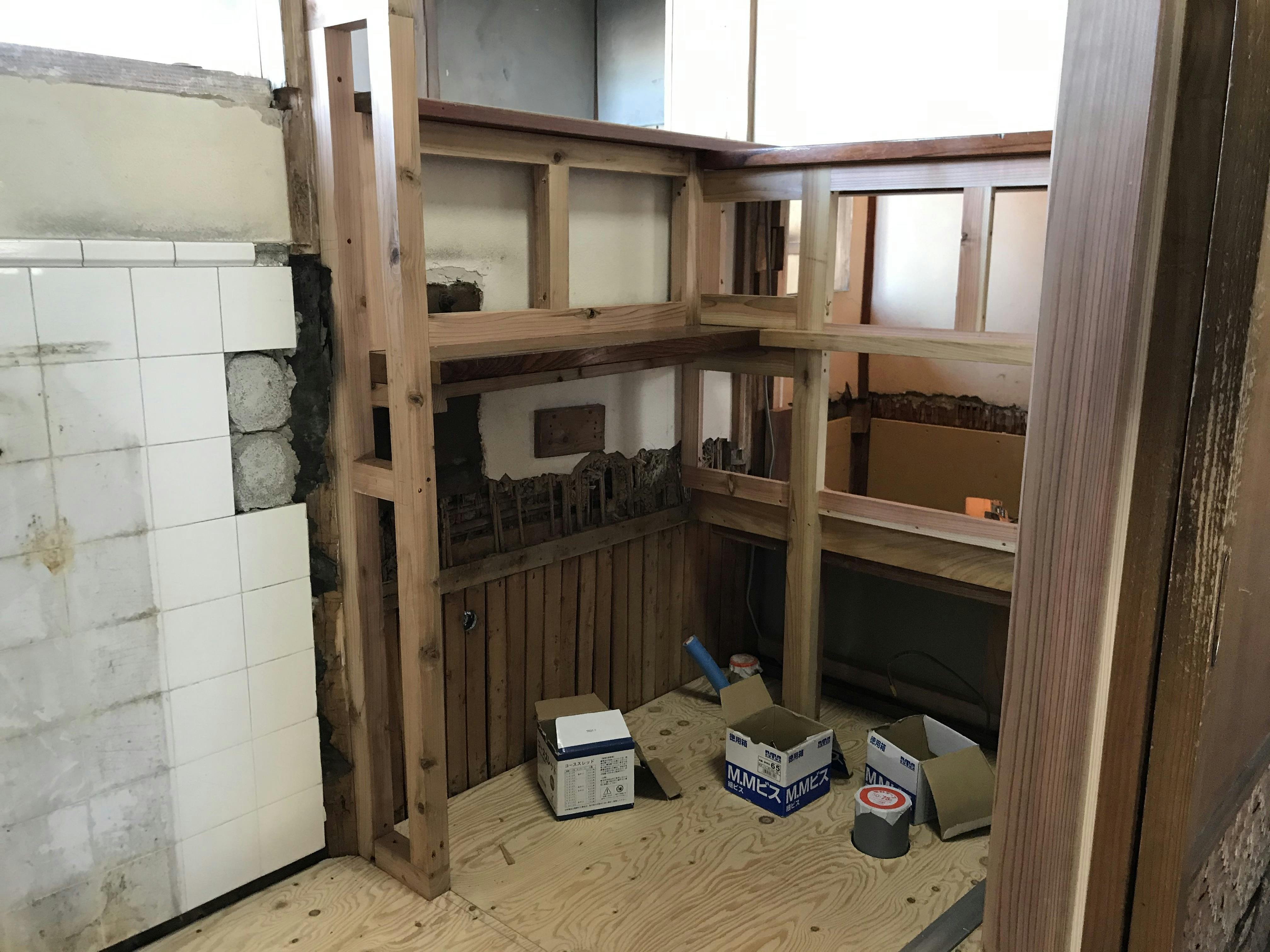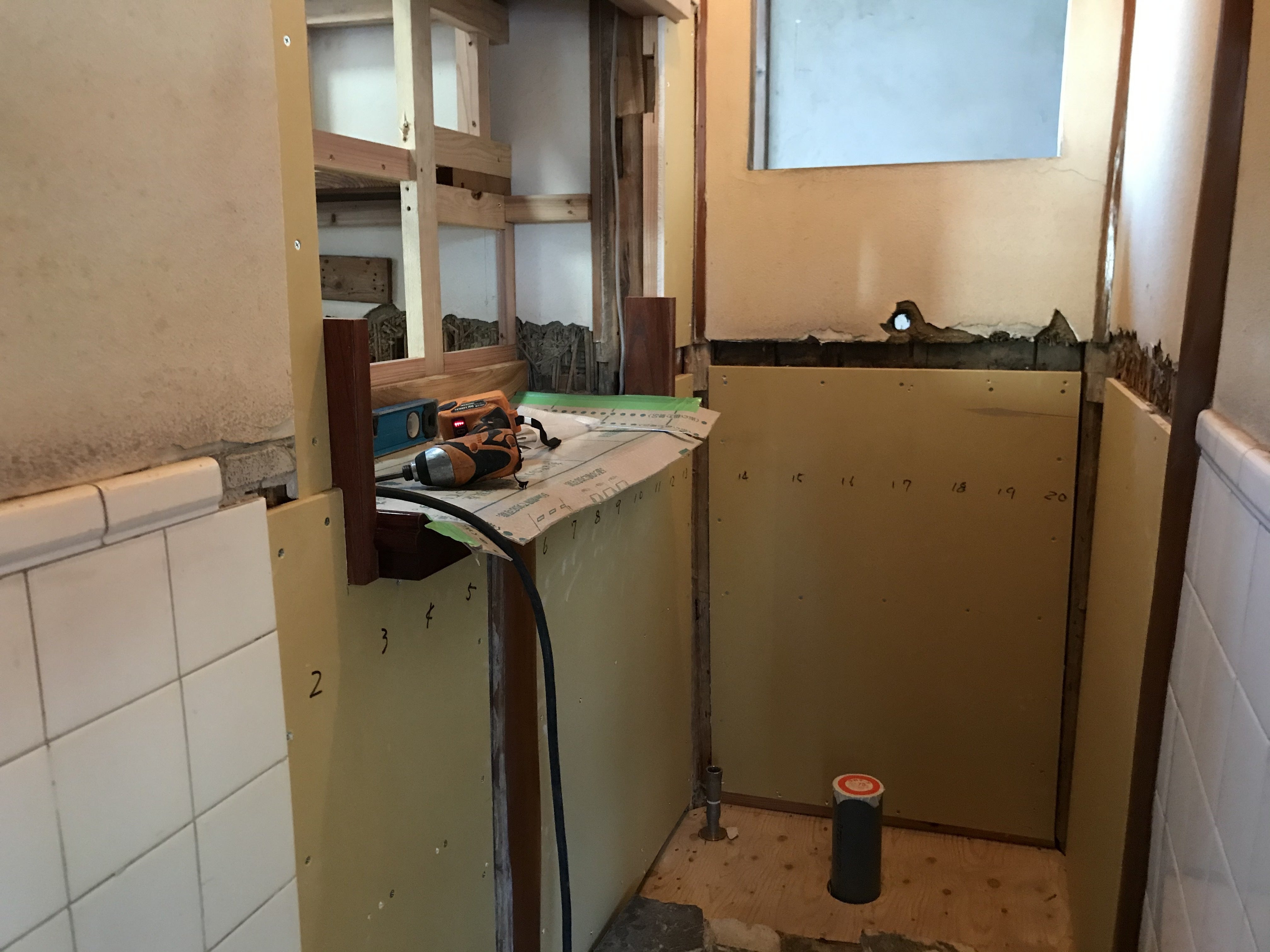 明日からは壁のタイルを貼る予定です。