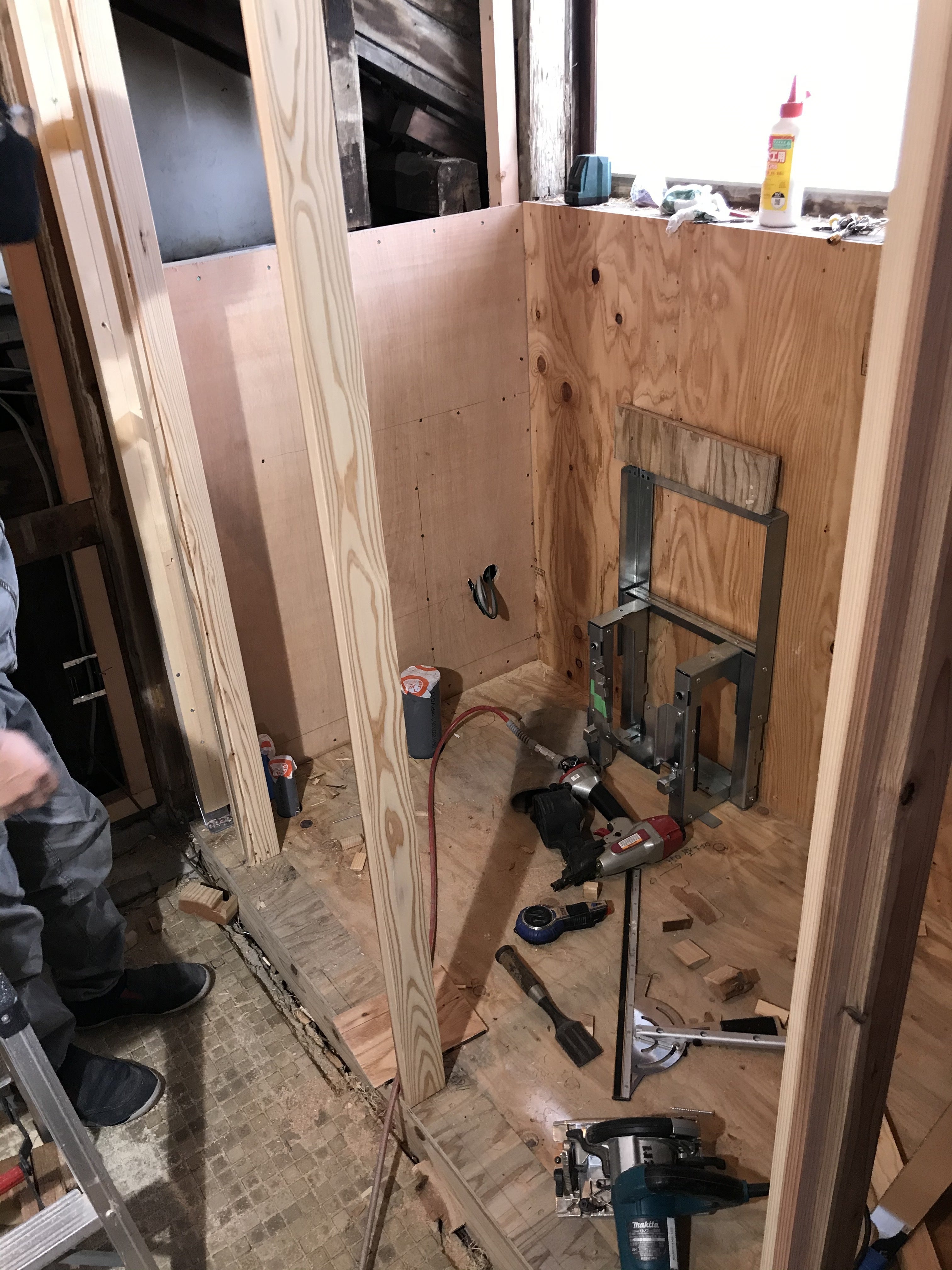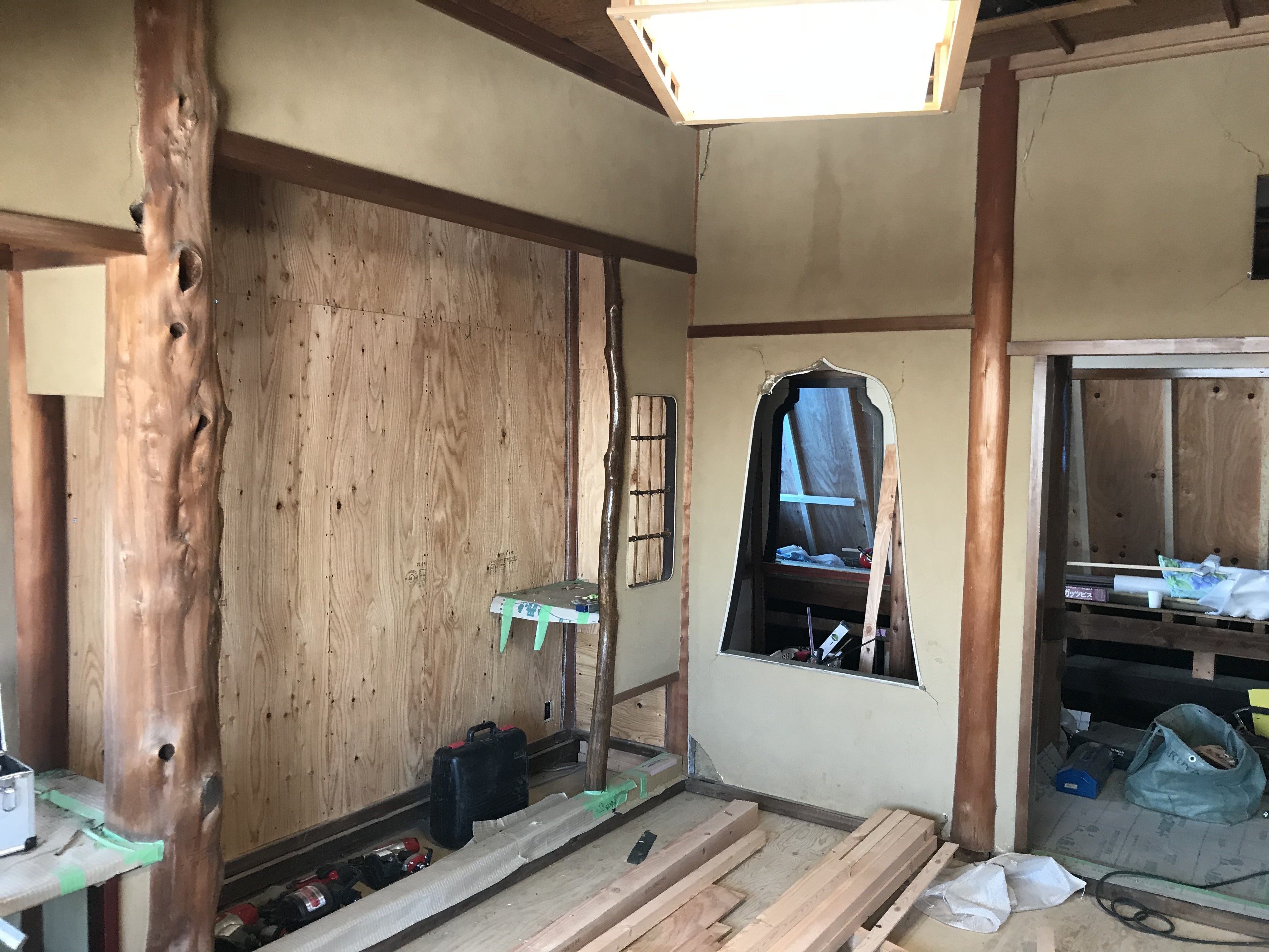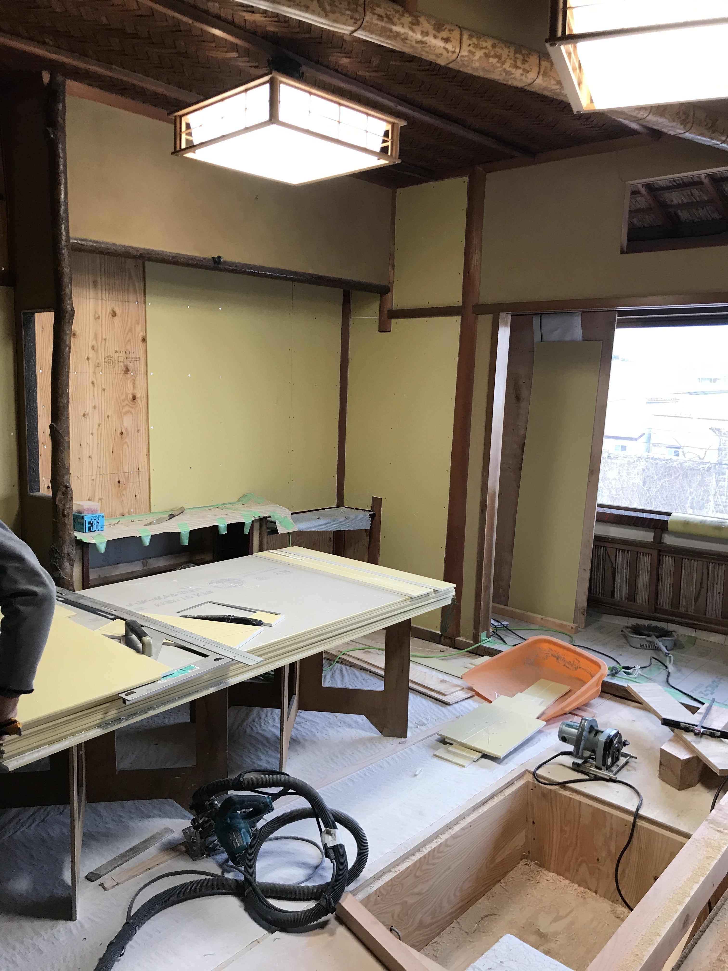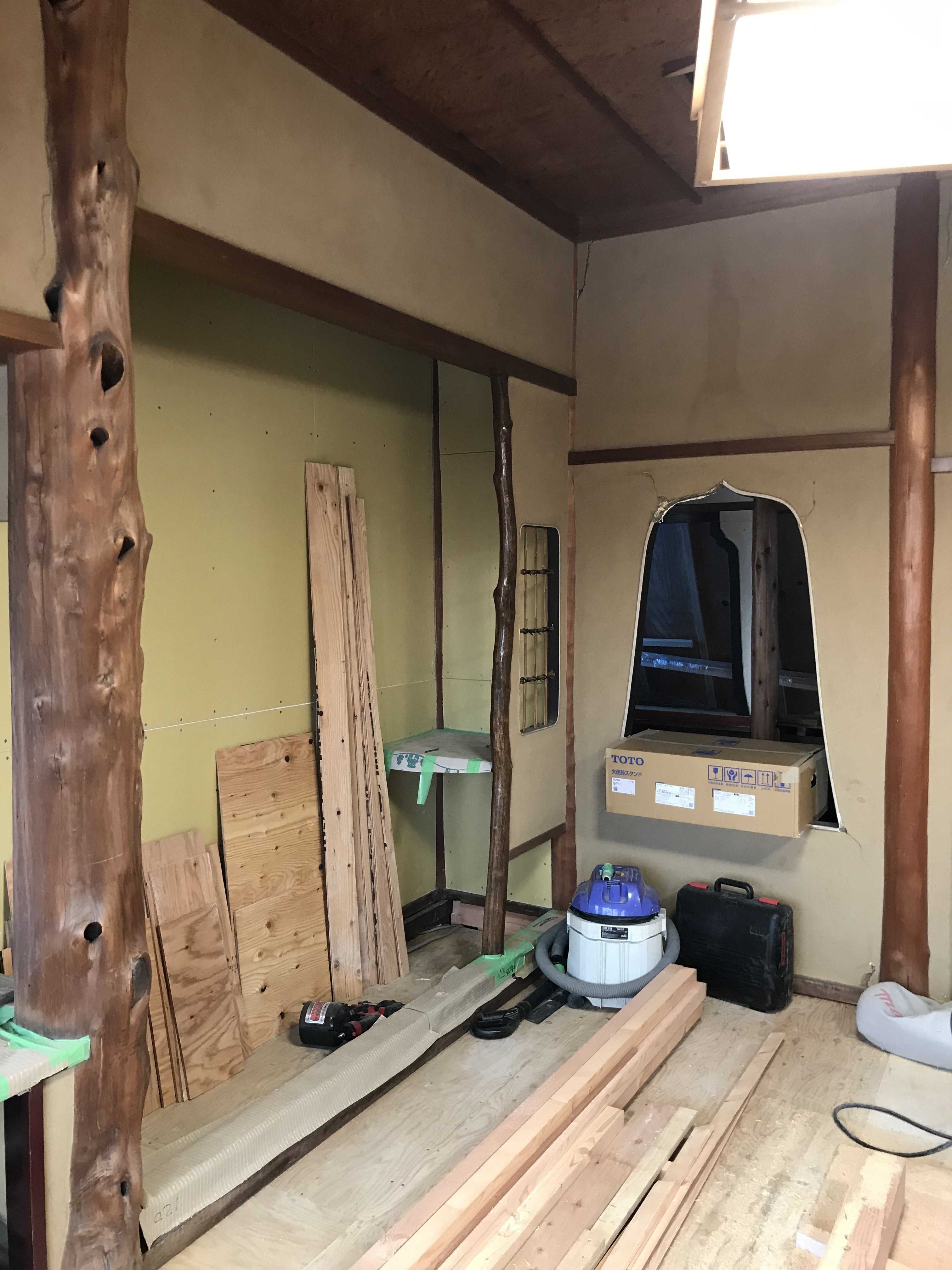 今週は部屋内とトイレの壁工事を行っております。