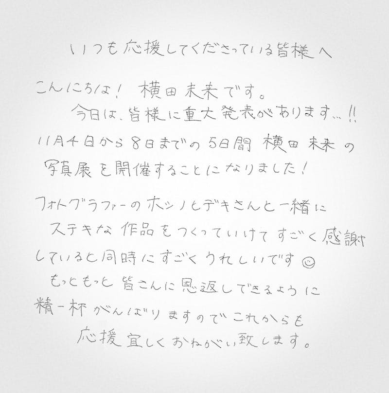 横田未来さんからのメッセージ