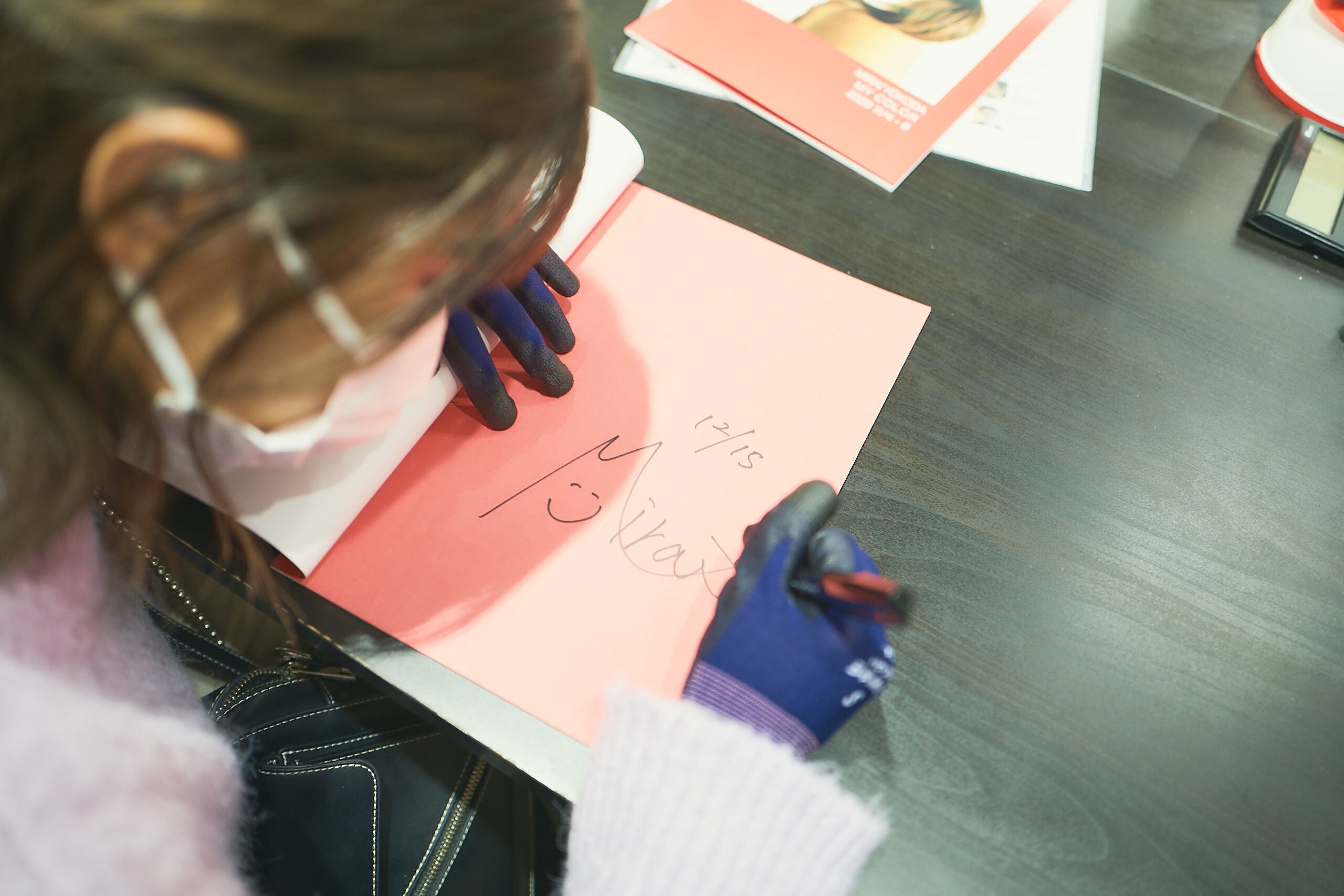 昨日、完成した図録に未来ちゃんにサインを書いてもらいました!