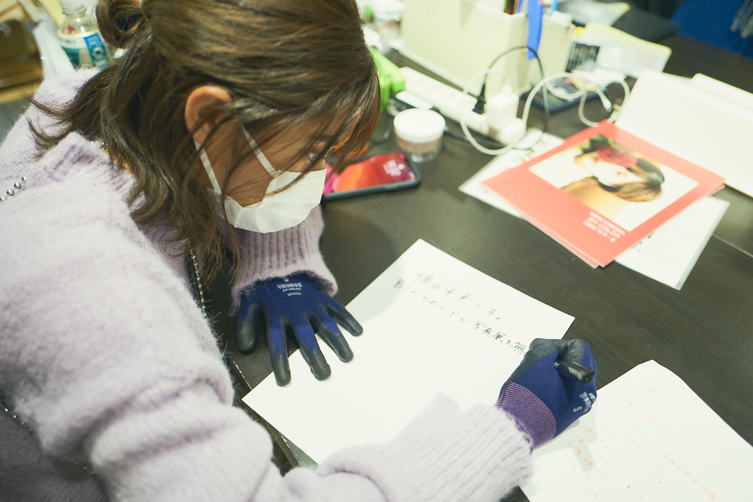 コロナ対策としてマスク・手袋着用で書いてもらいました~