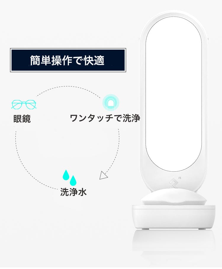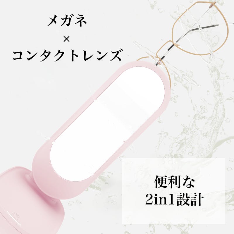 1台のクリーナーでメガネとコンタクト両方を洗浄できる2in1設計。