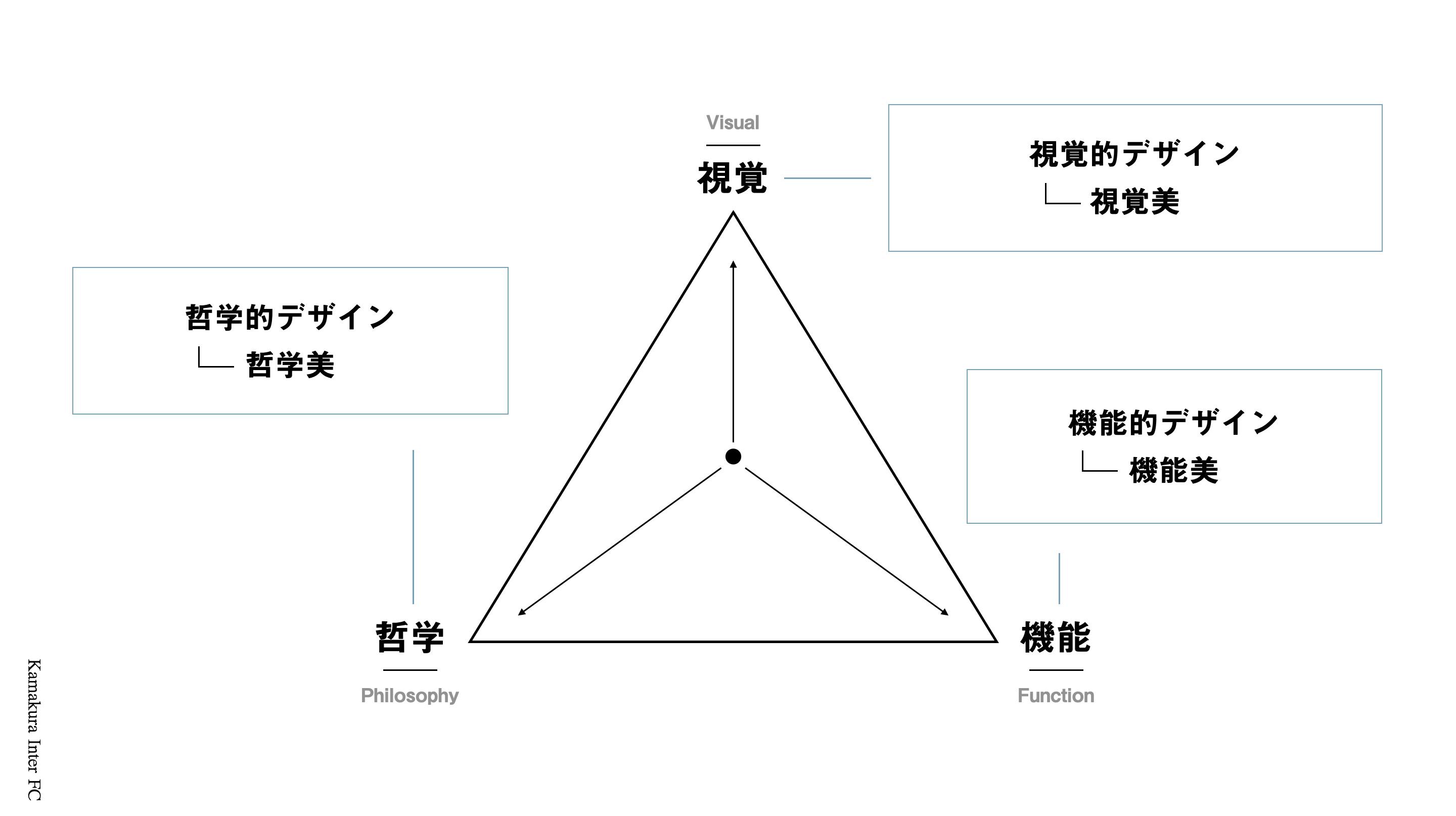 鎌倉インターナショナルFCは、このリブランディンを通じて、よりクールで「カッコいい」サッカークラブに生まれ変わります。そして、私たちにとって「カッコいい」とは『視覚』『哲学』『機能』の三要素で構成されています。