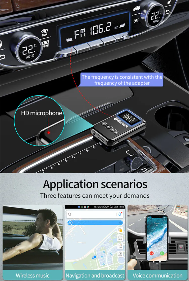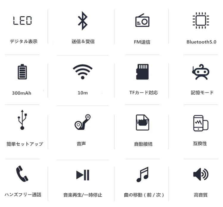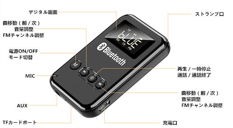 車載の場合、ワイヤレス音楽、ナビ音声、ハンズフリー通話などご使用いただけます。