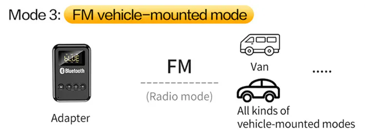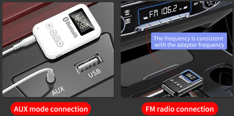 車載で利用する場合、AUXとFM2種類の接続モードがあります。