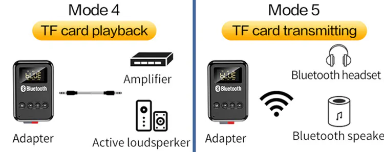 モード5:TFカードの音楽を無線スピーカまたはヘッドフォンで流します。