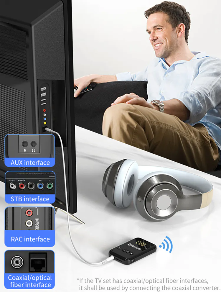 Bluetooth接続に対応していないテレビやパソコンなどの音源を簡単にワイヤレス化させ、Bluetoothイヤホンで流します。