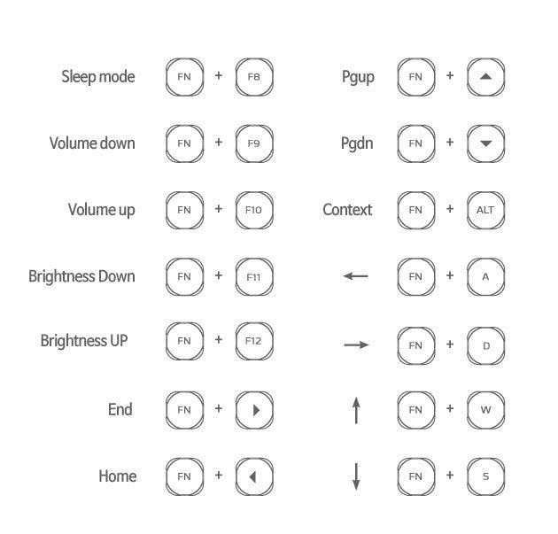 ペナ(PENNA)キーボードでよく使うマルチメディアメニューをFN+キーで使うことができます。FN+キーで簡単に素早く様々な機能を使ってみてください。