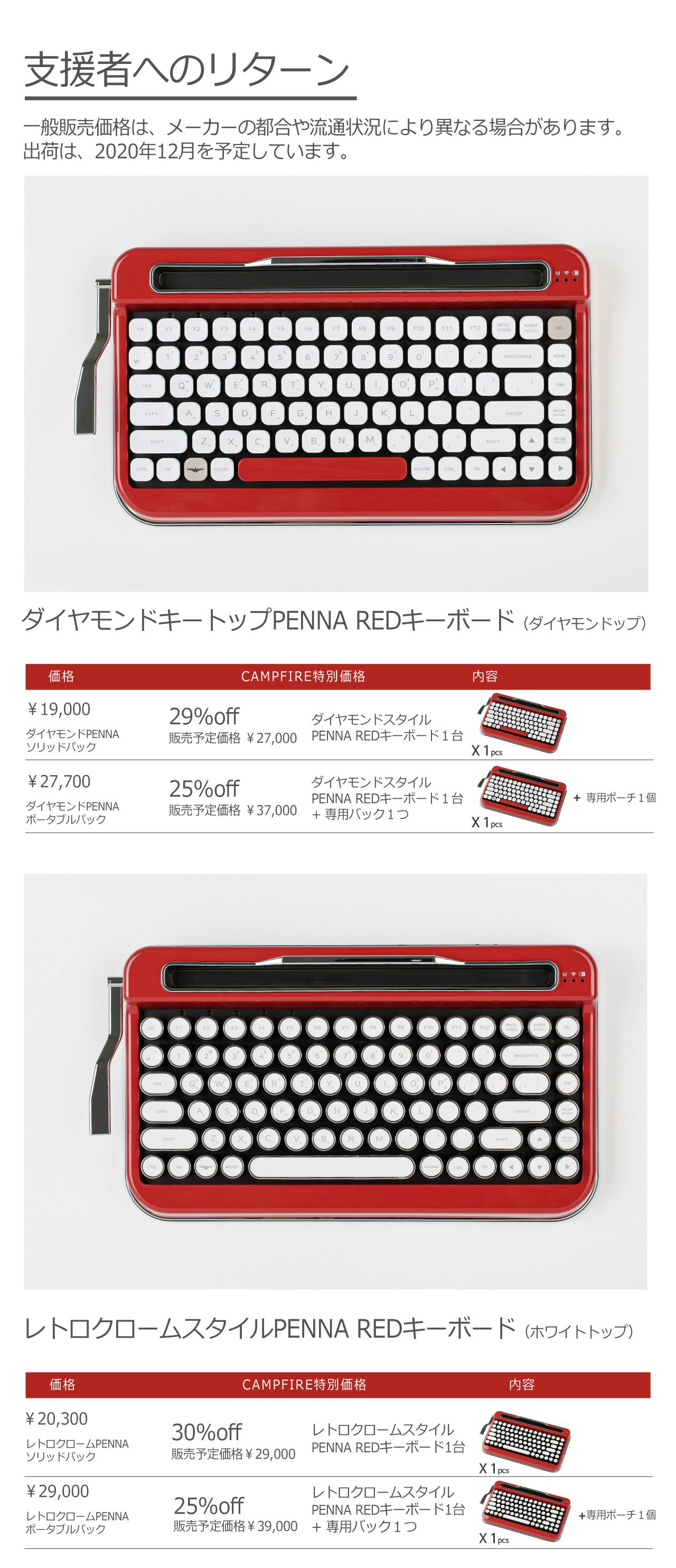 タイプライターのデザインを取り入れたレトロな感性と新しい技術で創られたニューレトロ (NEW-RETRO)を体感してみてください。今回のプロジェクトでは真夏に似合うレッドカーラーをご用意しましたので、皆様の応援購入ぜひお願い致します。