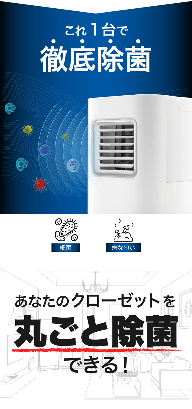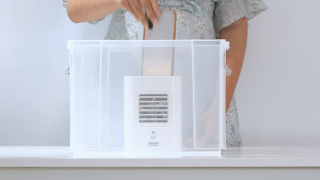 小さな箱に入れれば特定の物を効果的に除菌することが出来ます。スマートフォンやアクセサリーやバッグなど、洗濯できず除菌スプレーをするのも難しいものにはとても効果的です。