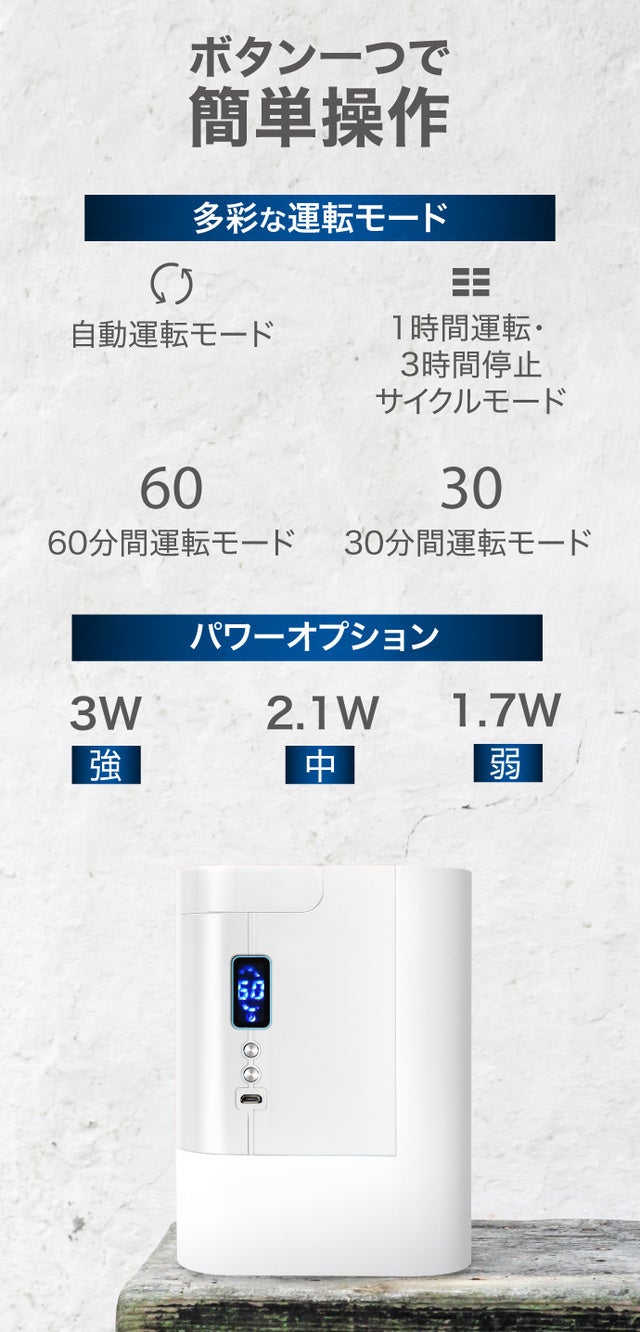 操作は簡単に行えます。機能の切り替えやパワーの切り替えも指一本。