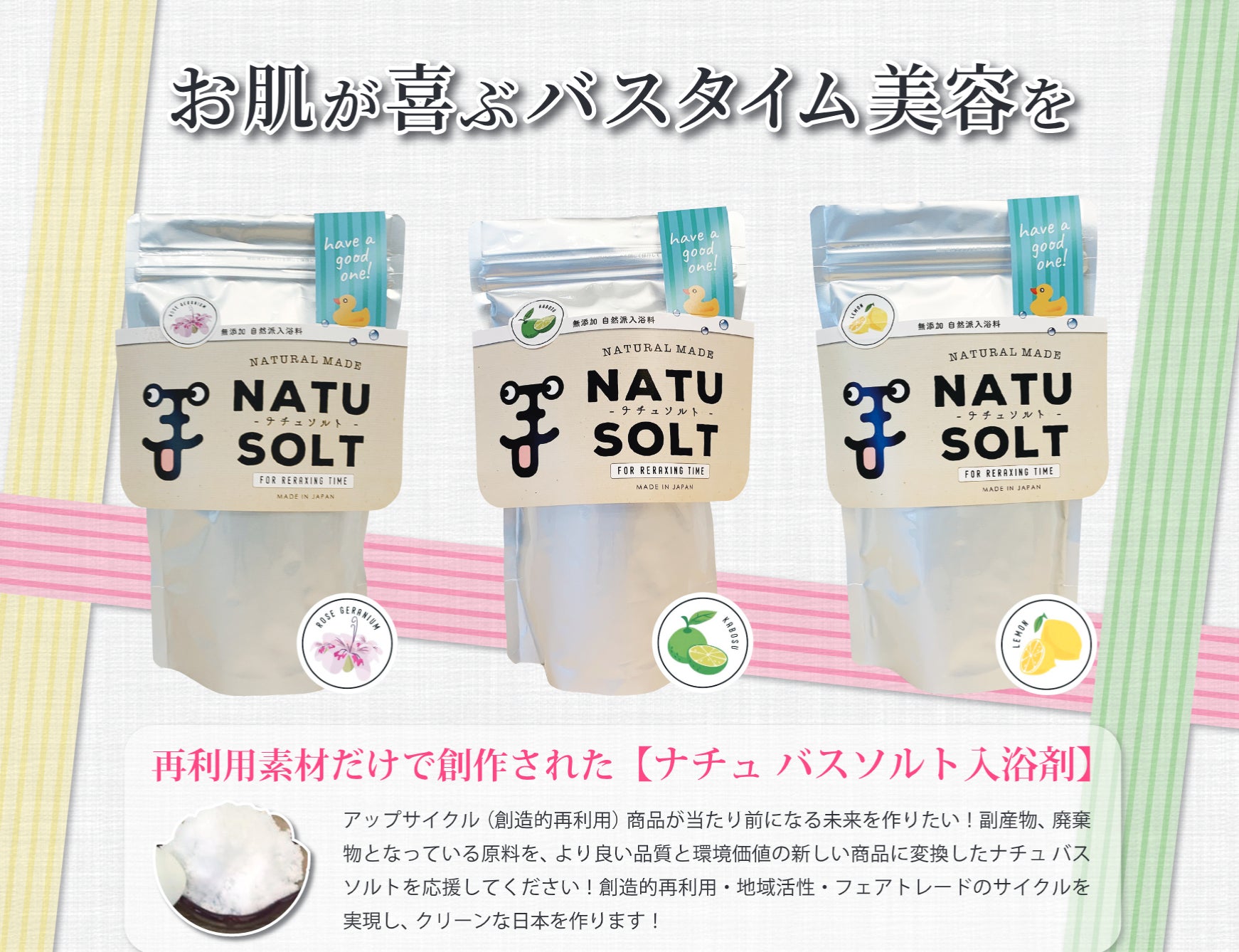 再利用素材だけで作られたアップサイクルプロダクト「ナチュ バスソルト」入浴剤のクラウドファンディングプロジェクトが、皆様の温かいご支援・ご協力をいただき目標を達成してプロジェクトを終了する事ができました。たくさんの応援をいただき本当にありがとうございました。ご支援をいただいた皆様に向けてのリターンは現在製造・発送準備をしております。11月上旬ころの発送を見込んでおりますが、1日も早く皆様にお届けできるように進めていきます。この度ご支援いただいた皆様に、改めて感謝申し上げます。