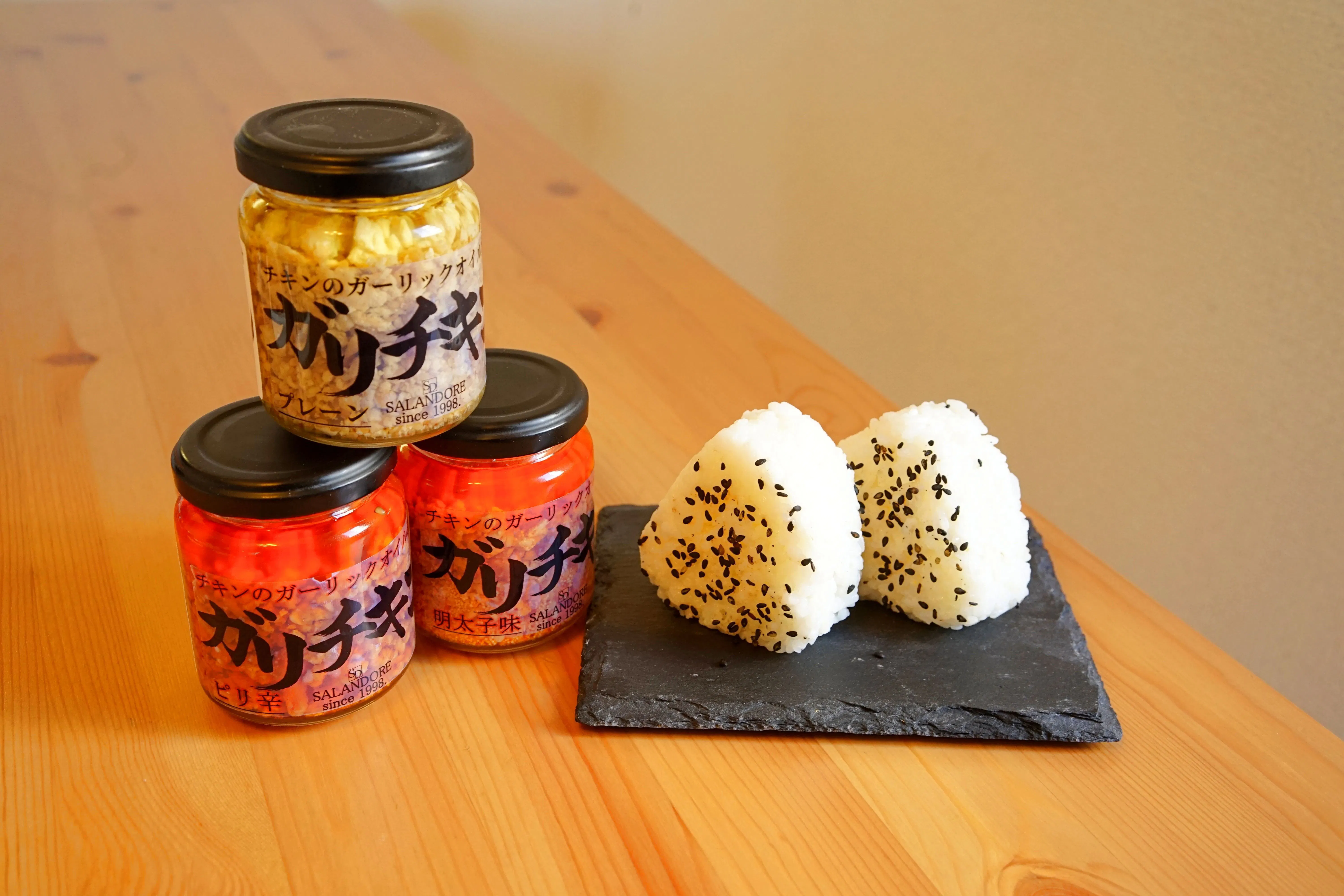 在庫は、ご飯のおともとして当店で最も人気のチキンのガーリックオイル漬け【ガリチキン】、