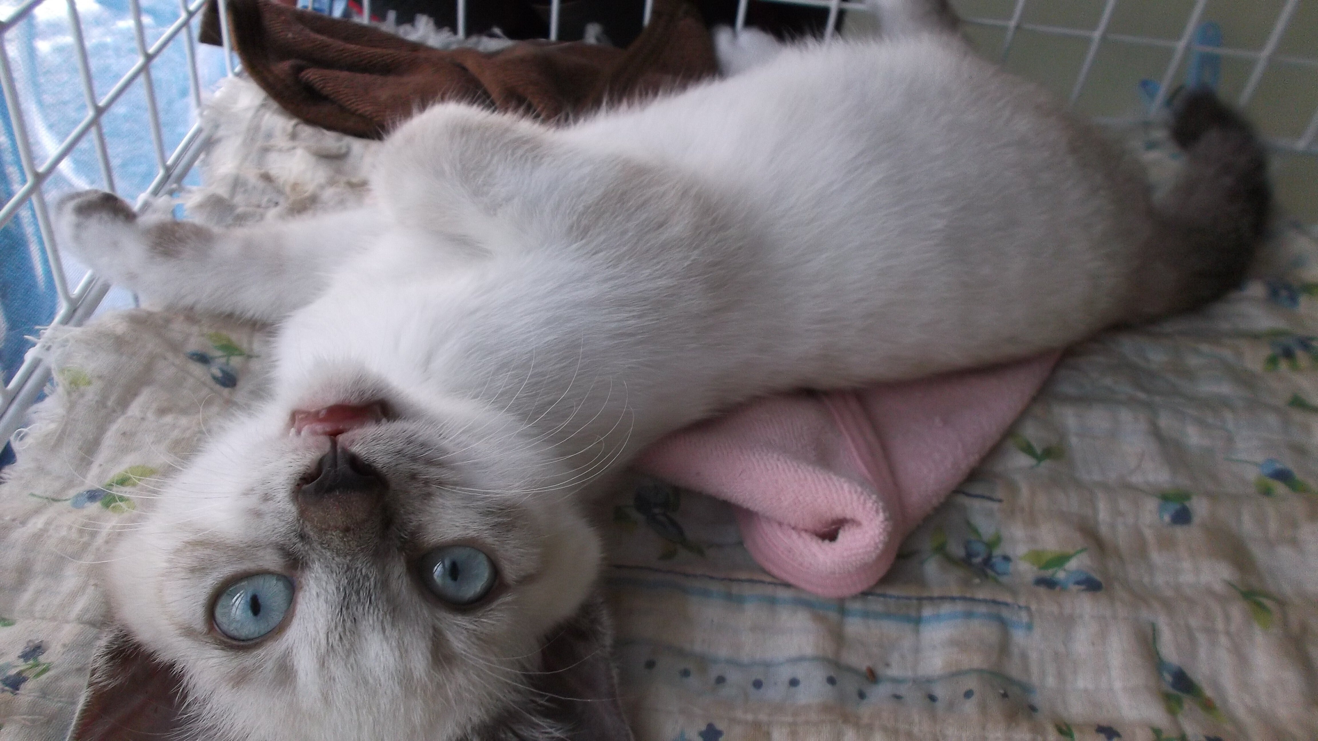 こんばんは、今日は昨日より気温が下がりましたが、台風の影響かとても蒸しますね台風の影響はみなさん大丈夫でしょうか?最近、地元でコロナウイルスの感染がじわじわと拡大し始めて、もっと手洗いやマスクなども気を付けていかないとなぁと思いました里親さんを本格的に探す時にはもう少し収束してくれるといいのですが…。今日は午前中と夕方がけっこう涼しかったので、子猫たちをゲージから出して遊ばせていました人馴れの訓練のためと思って、抱っこして1匹づつ膝にのせたりもしたのですが、割と大人しくしてくれて、おお~、と思いましたオスの子猫は相変わらず、ゲージに私が近づいて撫でたりするとゴロゴロしてくれます今日はメスの子猫も撫でてかまっていたら、ゴロゴロしてくれました餌を半分くらい食べてから、私の指からもう半分を食べるのが常態化してきてしまいました。自分でちゃんと全部食べられるようになるかな…(´・ω・`)お腹も見せて、背中でずりずり~と移動してたのが、面白可愛かったですメスの子猫も心を許してきてくれたようです嬉しいと同時に別れがつらくなりそうという不安が募りますねいつも、何か真面目な事を書こうと思うのですが、書いてはやめてを繰り返してしまいます一昨日ぐらいに先住猫の一匹である黒とらちょびひげ猫が吐いてしまい、あんまり吐かない子なので、そちらの心配もありました。今はケロッとして元気そうなので、大丈夫だとは思うのですが、黒とらちょびひげ猫は猫嫌いで先住猫との折り合いが悪く、違う部屋にいるのですが、ちょくちょく様子を見にいっています先住猫というよりも他の猫を受け入れるのがダメみたいです先住猫や子猫たちを触った手を近づけようとしてもシャーっとされますこの子も、前に活動報告で書いたと思うのですが、2年前の父の告別式が終わった後に家の前に捨てられていた猫で、正直、父の介護が終わって、いっぱいいっぱいで、経済的にも精神的にも新しい猫を飼う余裕は全くありませんでしたけれど、人に飼われていた猫らしく、大きさはもう既に成猫で、人が大好きで他の猫は受け入れられないという猫だったので、他の猫に喧嘩を売りまくって、野良猫にしっぽをちぎられてしまい、急遽、動物病院に連れていくという事もありました捨てていった人には、それなりの事情があったのかとも思いますが、かなり怒りを覚えましたどうして、ここまで可愛がっておいて、捨てていくのか人の勝手で猫たちは振り回されます少しでも猫を置いていったり捨てていったりする人がせめて少なくなればと思います私も、すべての猫を救う事なんてできないし、きっと百点満点の行動なんてできてはいないとは思います。こちらのプロジェクトを覗いてくれる方はきっと猫好きな人が多いのに、こんな話を書いてしまって申し訳ないですまた明日、子猫たちのかわいい姿を報告できればと思います