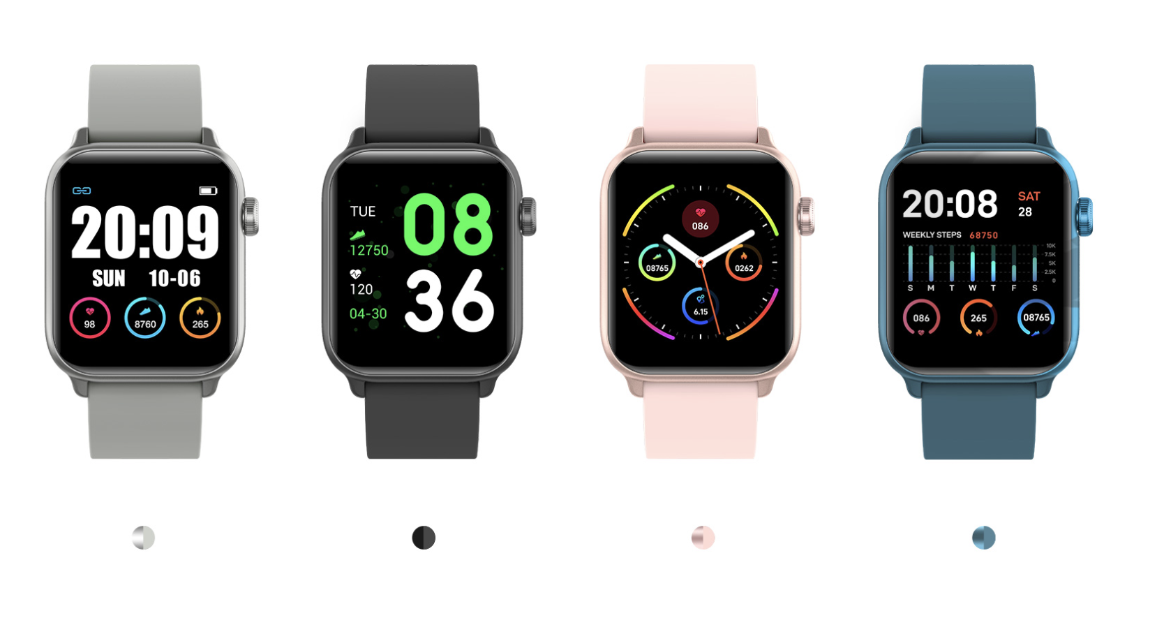 A.一定間隔で自動測定出来るのは「体温・心拍数」のみです。血圧・血中酸素濃度は自動で測定は出来ませんが、アイコンをタッチしてすぐに測定することができます。