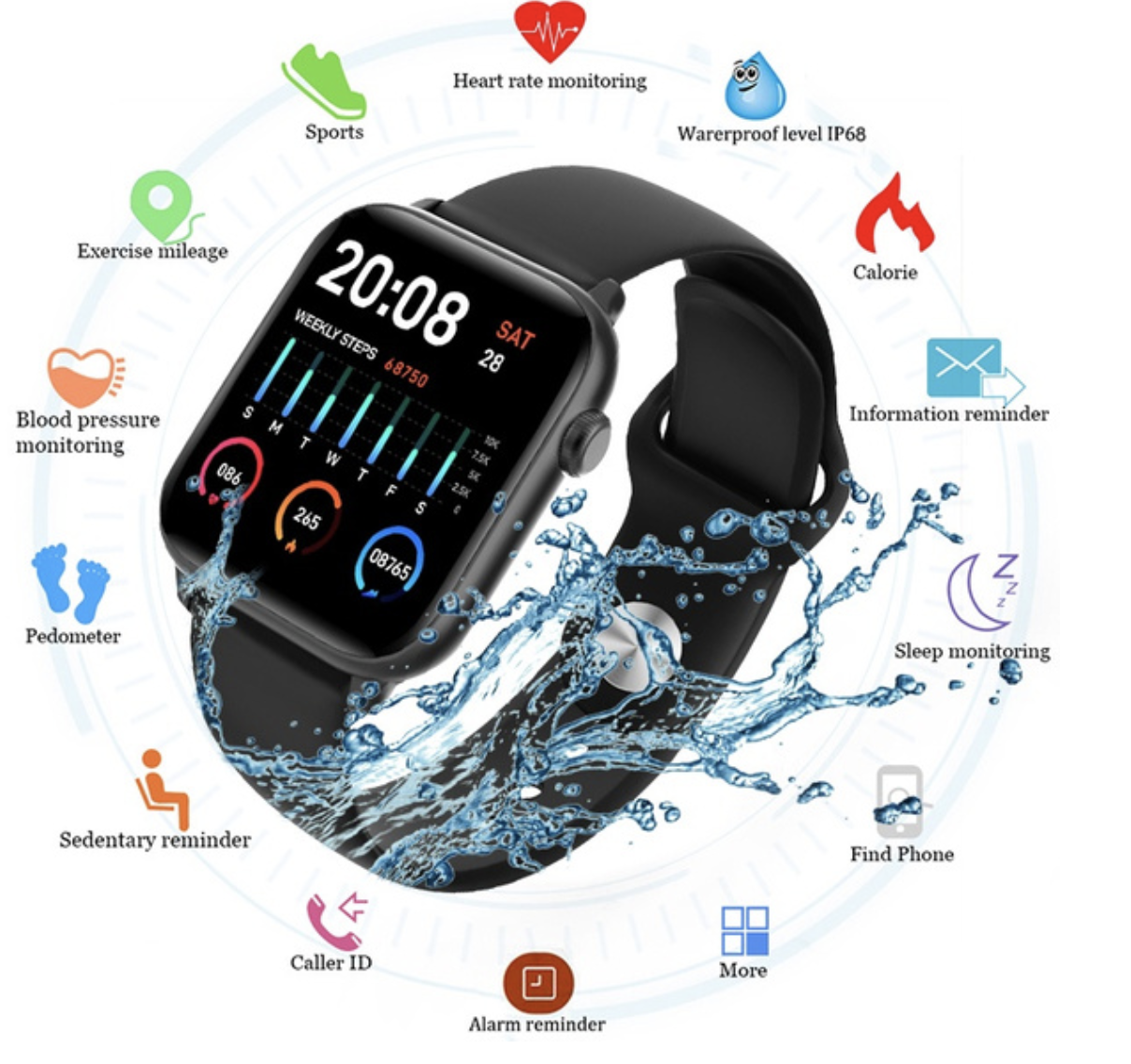 またヘルスウォッチは最高性能の防塵・防水性機能を持ち合わせているので、水に濡れても問題ありません。