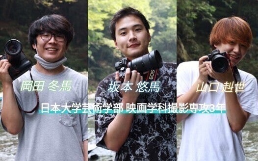 今回の短編映画には日本大学芸術学部の坂本悠馬くん・岡田冬馬くん・山口赳世くんの学生3名が撮影に挑戦します。プロの撮影現場での経験はございますが、私は彼らのひたむきさとそれぞれが持つ個性に胸を打たれ今回のプロジェクトの協力を願い出ました。どうか彼らの新たな挑戦と今後を期待していただき皆様方のご支援ご鞭撻の程よろしくお願い致します。