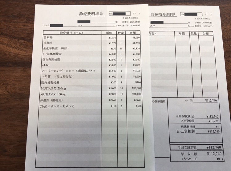 かかりつけ病院でFIPの可能性指摘までに4万