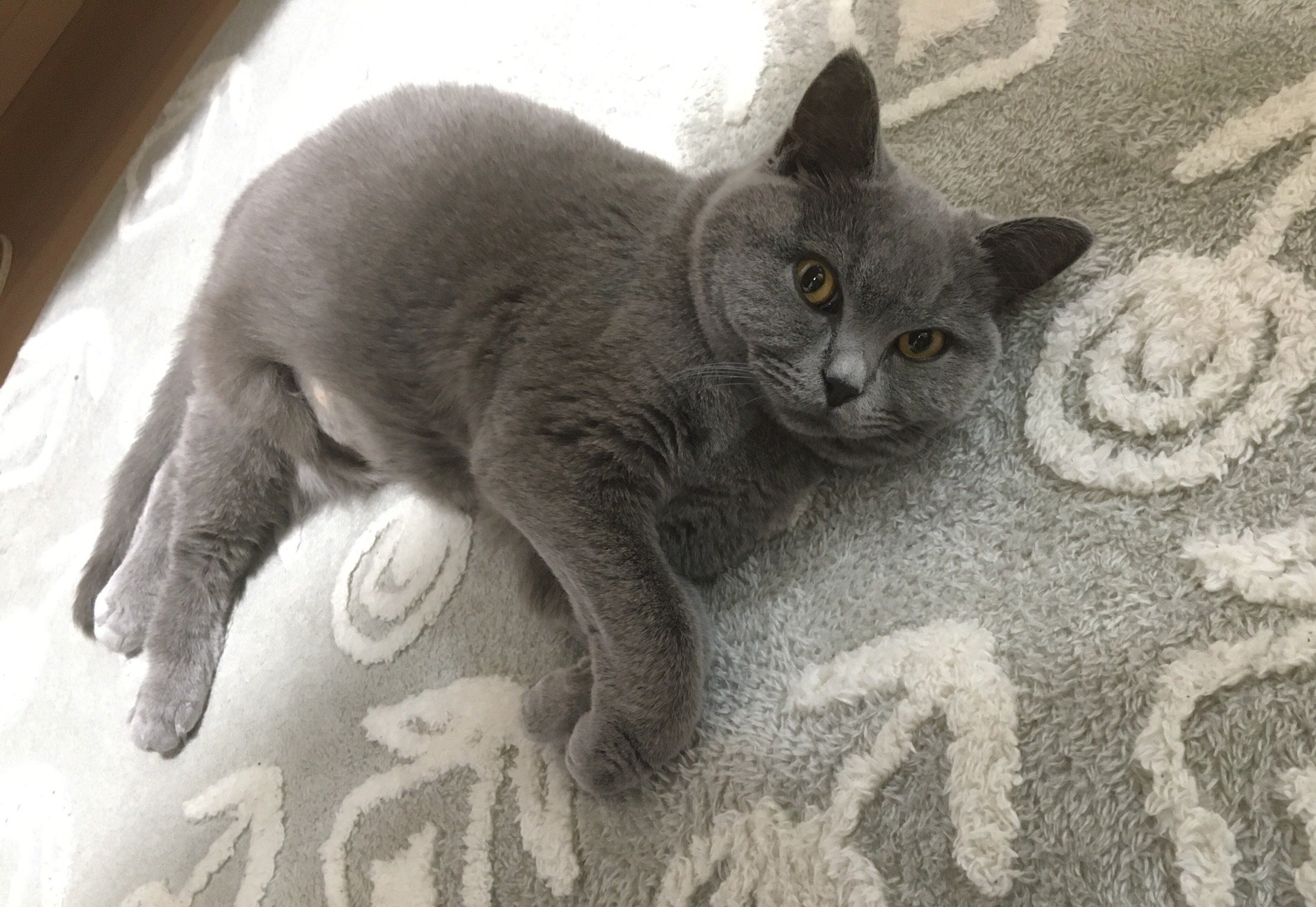 ※初投薬翌日の様子。検査のためお腹の毛は剃られてしまってかわいそうですが、瞳はしっかりています