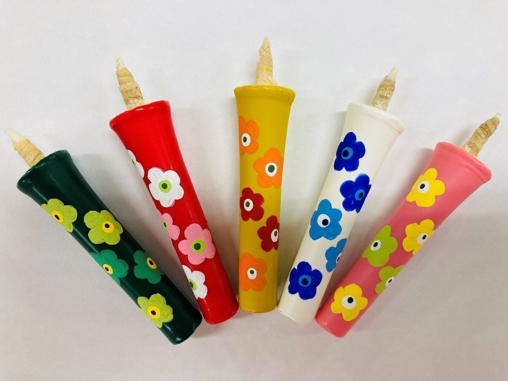 ※ ろうそくは大変熱くなりますので,ろうそくの下に燃えない材質のものを敷いていただくなど,火の取り扱いには十分ご注意ください。