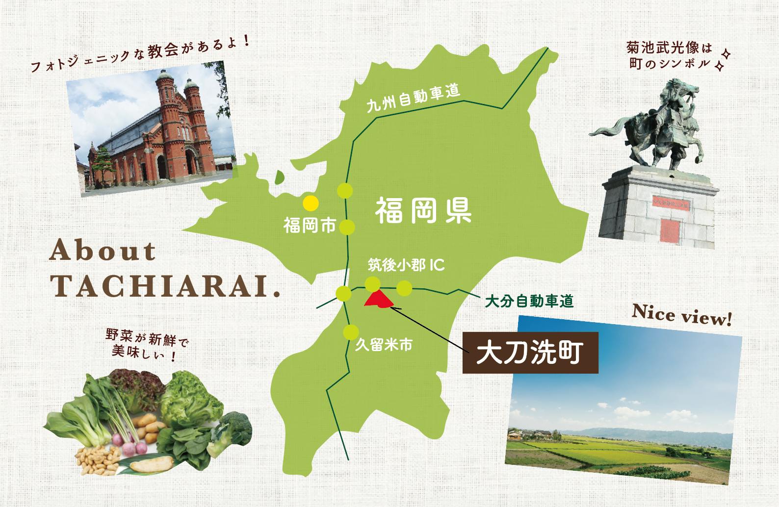 大刀洗町は福岡県南部に位置する人口約1万5千人の小さな町です。筑後川が流れ、大きな空が広がり、田んぼ、耳納連山を遠くに眺める長閑な土地です。そして、大刀洗町は人がとにかく元気!お年寄りが生き生きと生活しています。休日は子供たちが目一杯走り回れる広い公園と程よい自然が溢れており、子育てにもとても良い環境が揃っています。