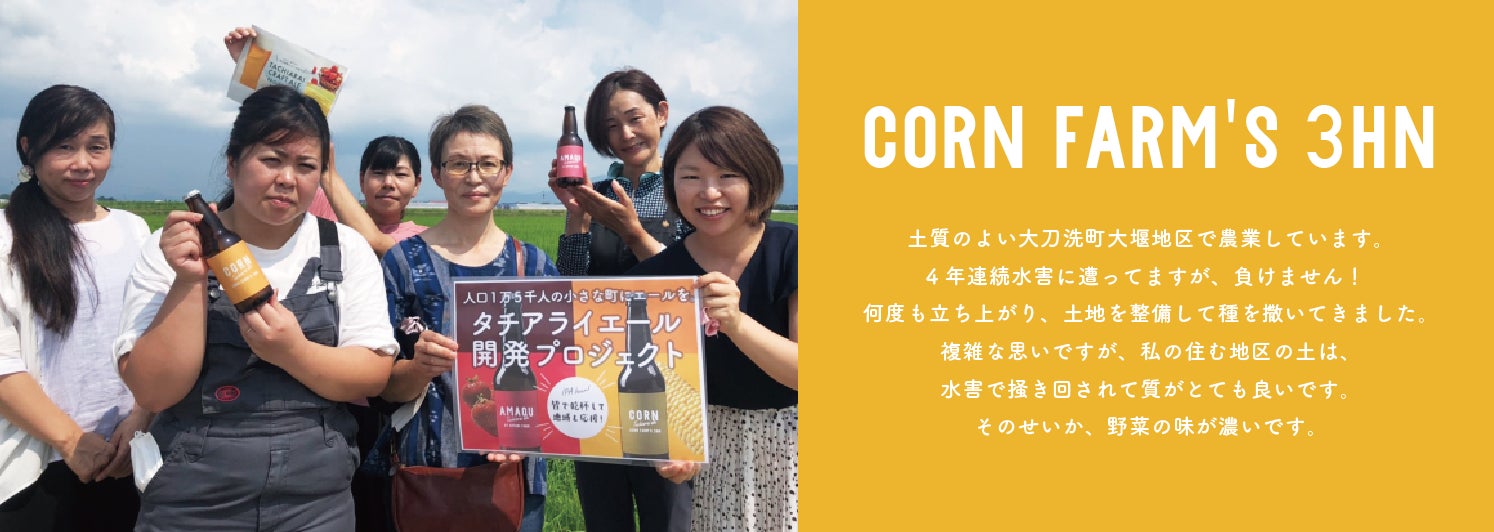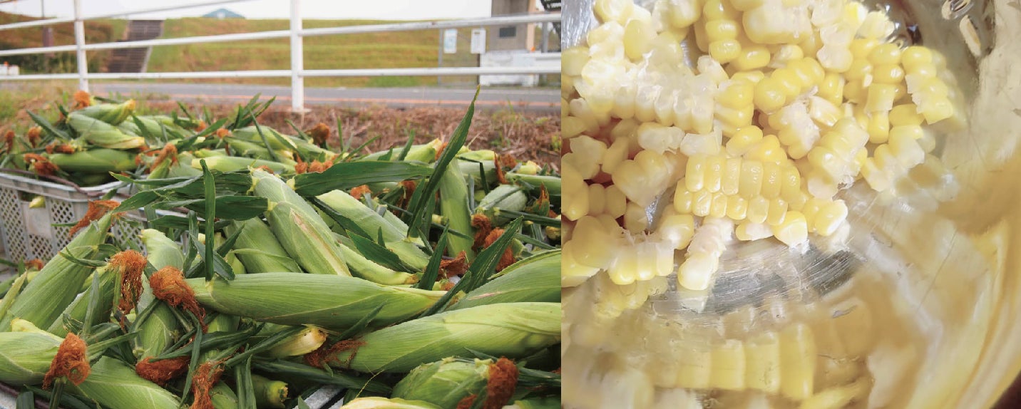 とうもろこし素材提供・ご協力: corn farm's 3Hn(ヒラタの畑 平田 裕子さん、マルスファーム平田由美子さん、ながのファーム 長野 恵さん、ひらつかファーム 平塚 里枝さん)