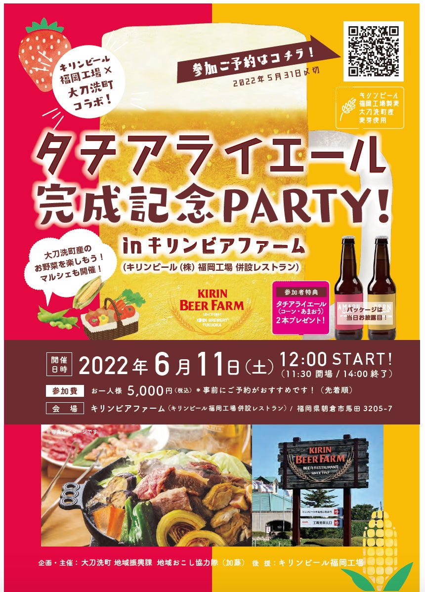 大刀洗町の農作物ロス品を使用した、 クラフトビール(あまおう・コーン)が完成を祝して、