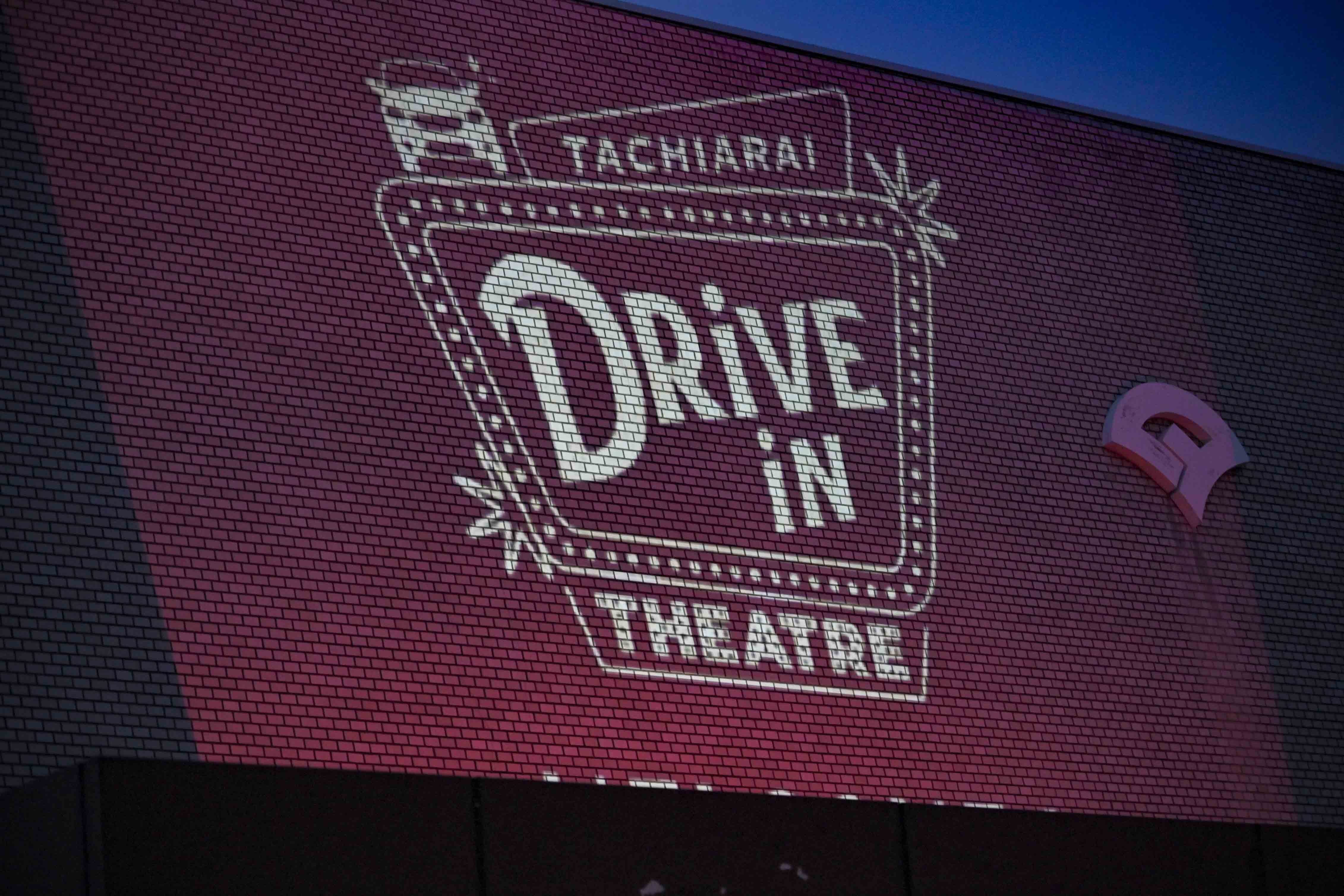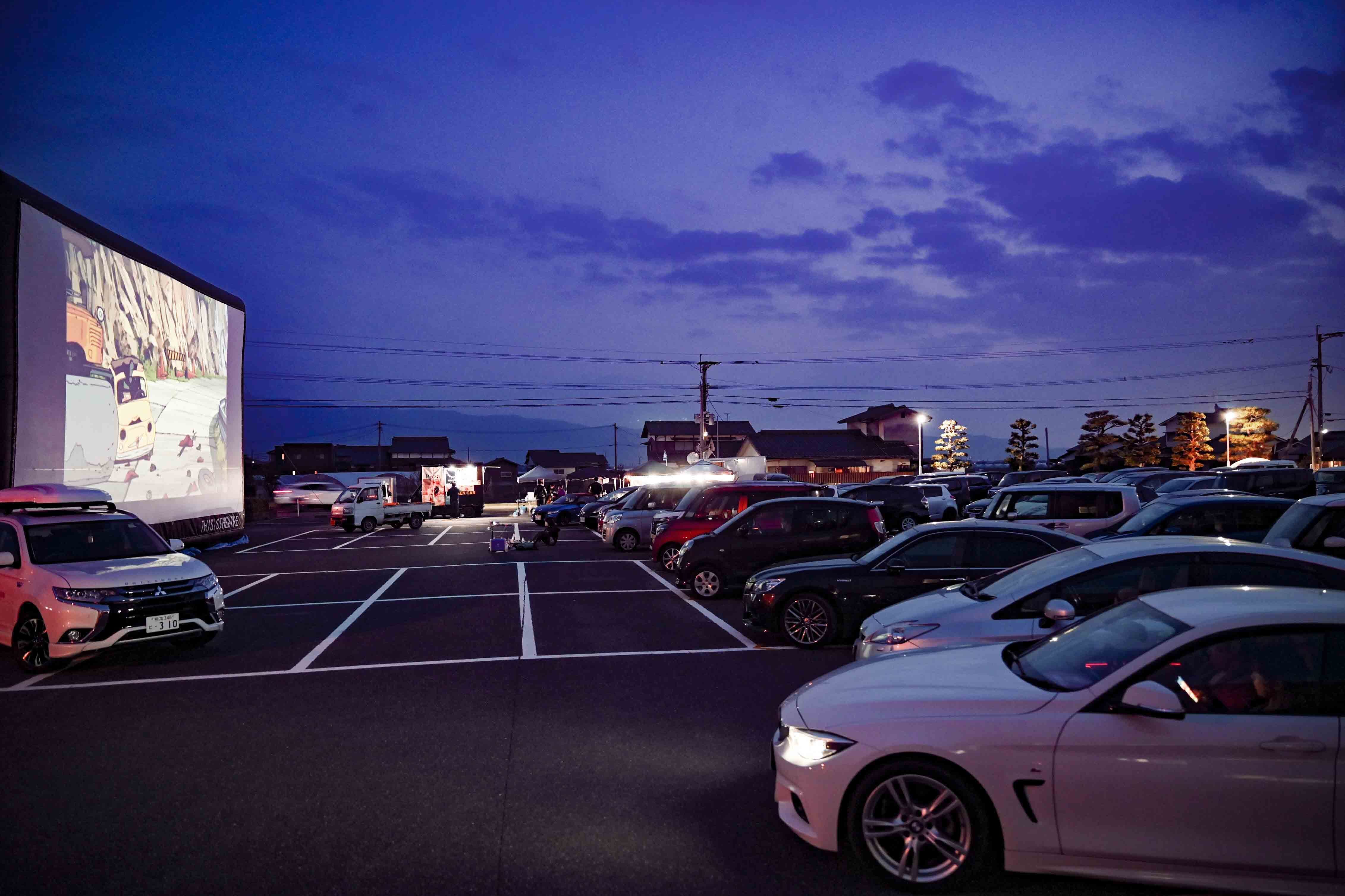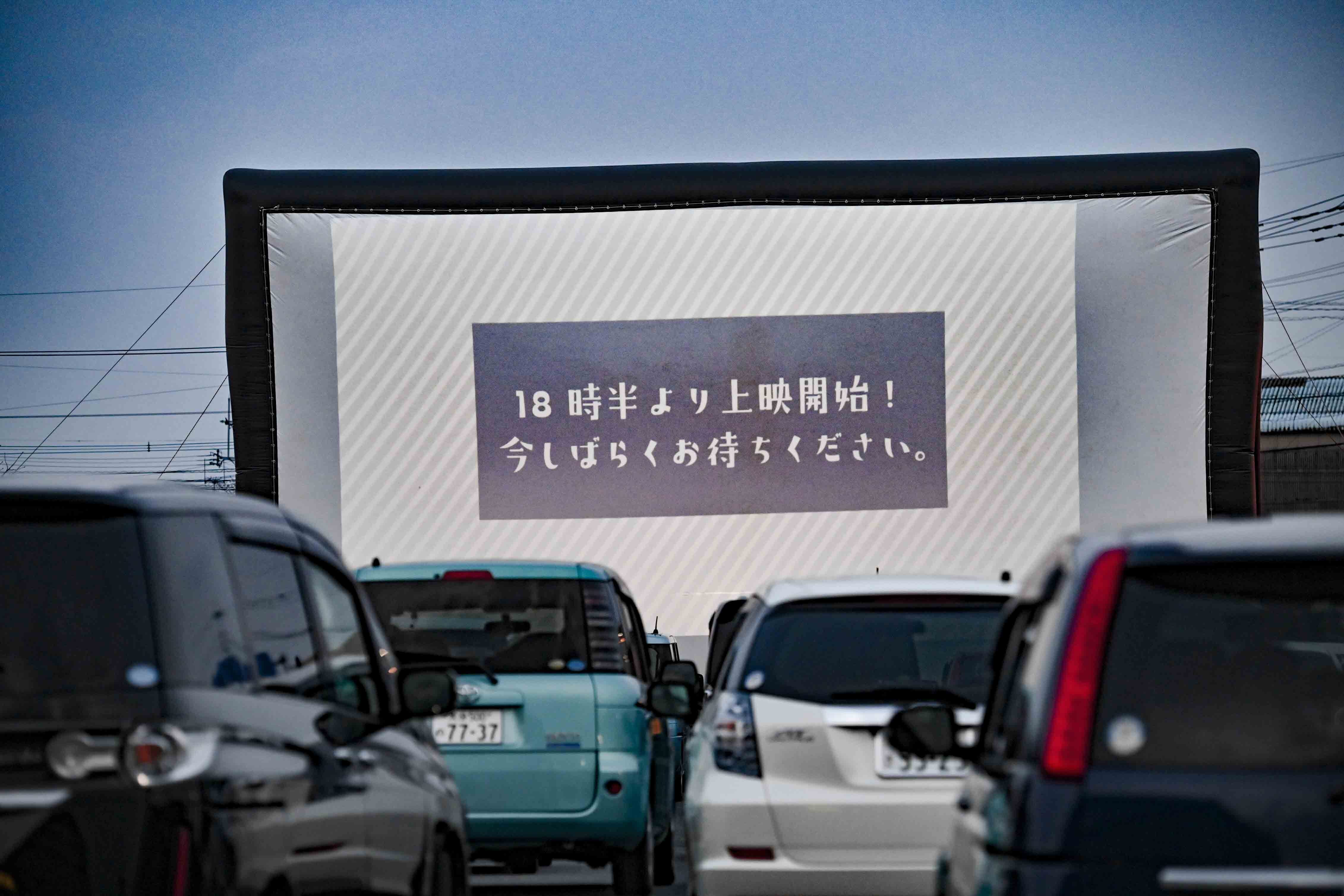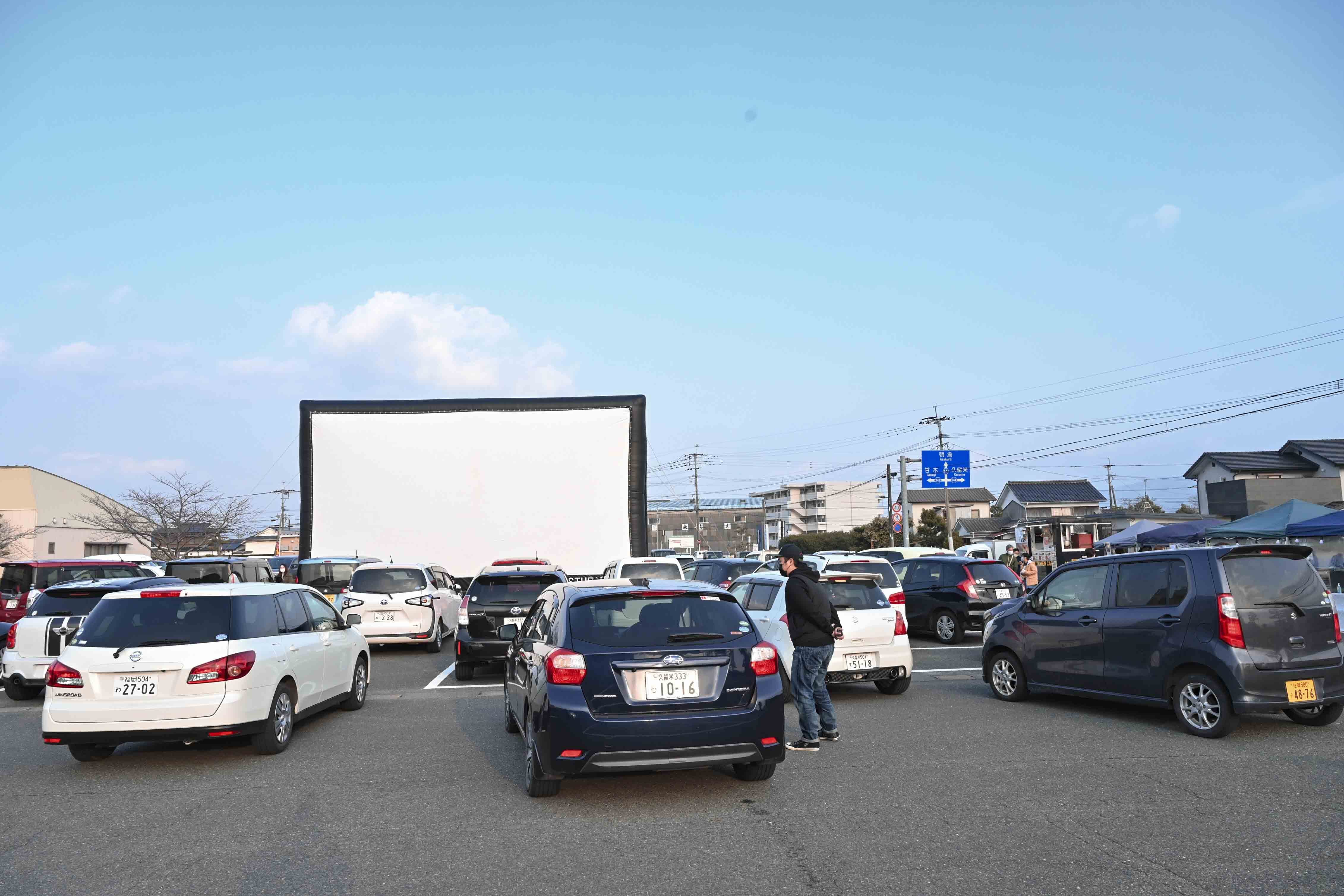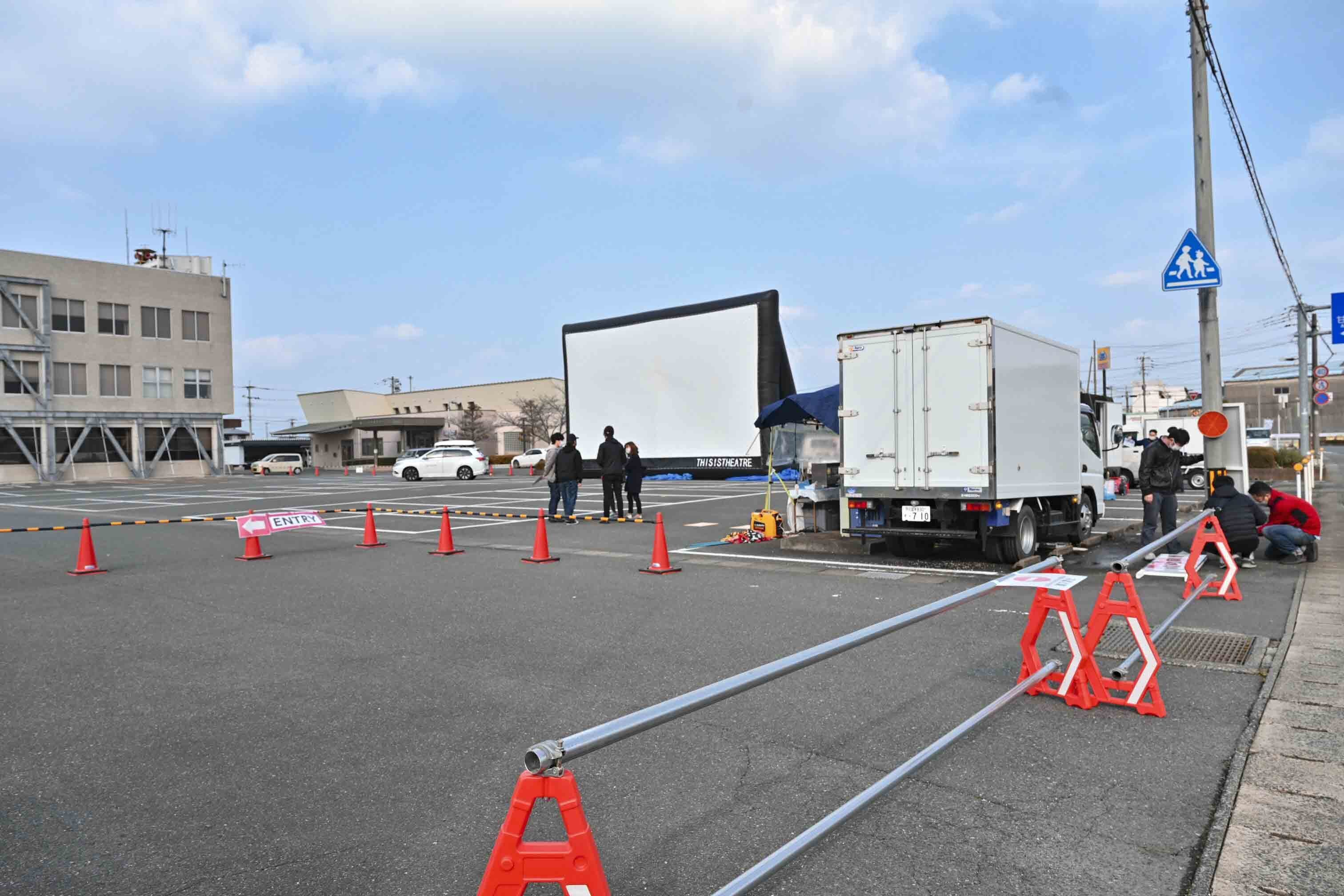 15時頃、大きなスクリーンが役場の駐車場にどーーーんと登場!!でかい!