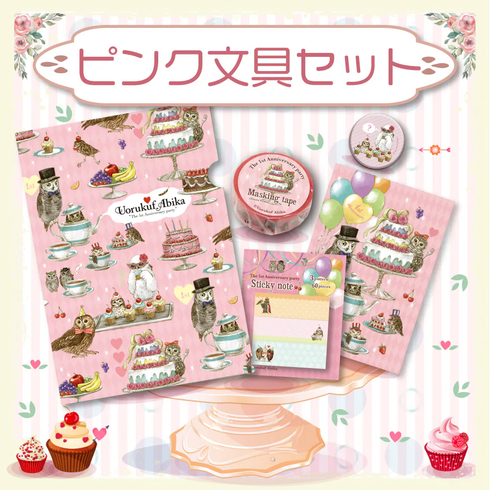 アキフクオリジナル★文具5点セット《ピンク》《ブルー》《ベージュ》の3カラーからお選びいただけます。アキフク1番人気のグッズ #マスキングテープ を含めた文房具セット。フクロウ達がデスク周りを彩ります♪