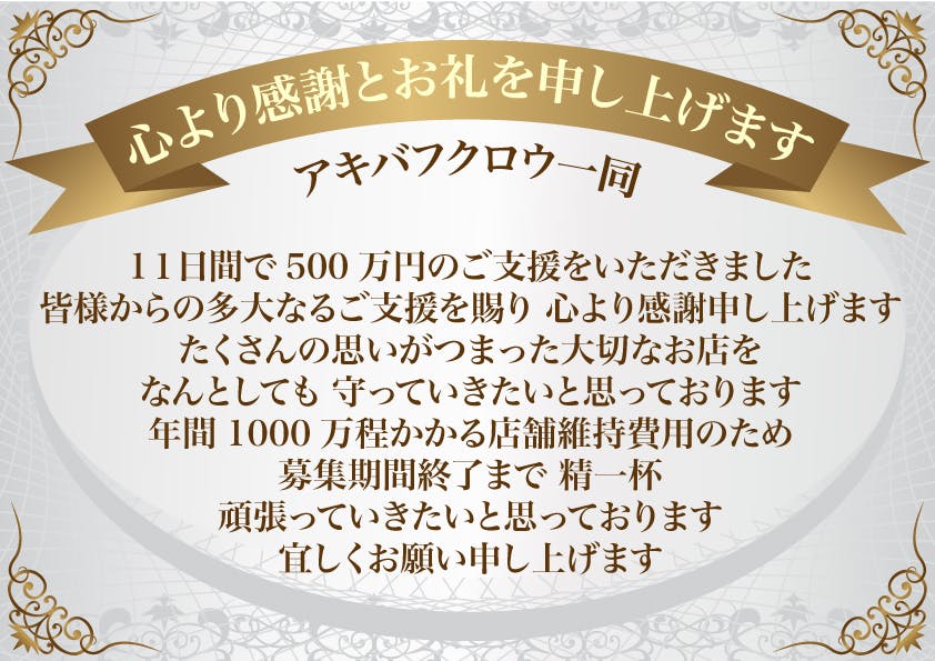 本当にたくさんのご支援に感謝申し上げます。フクロウ達の餌代やお家賃など、今後のアキフクの運営費に充てさせていただきます。