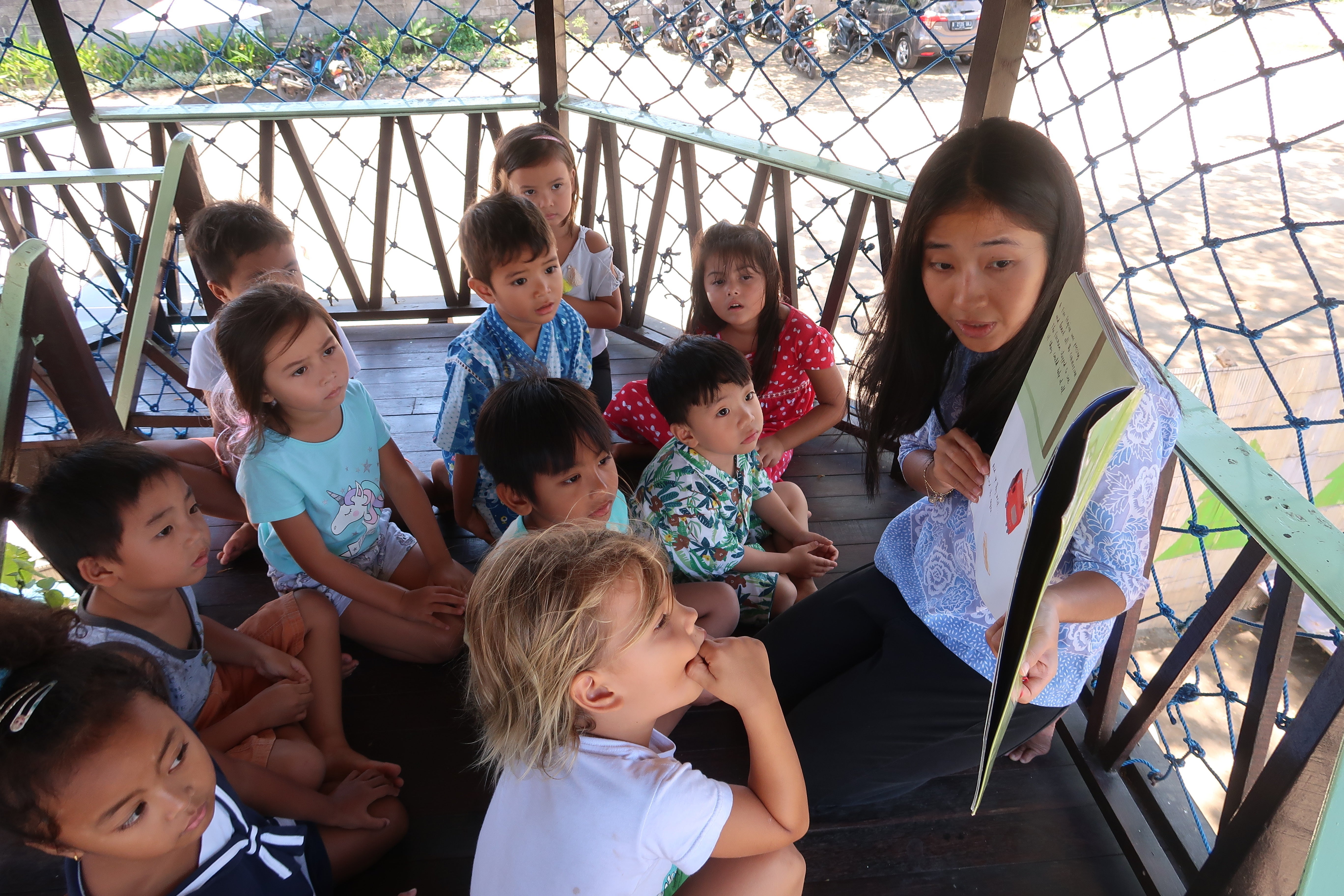ルマクチル保育園では絵本を読む時間も大切にしていますが、ツリーハウスはここでも大活躍!!