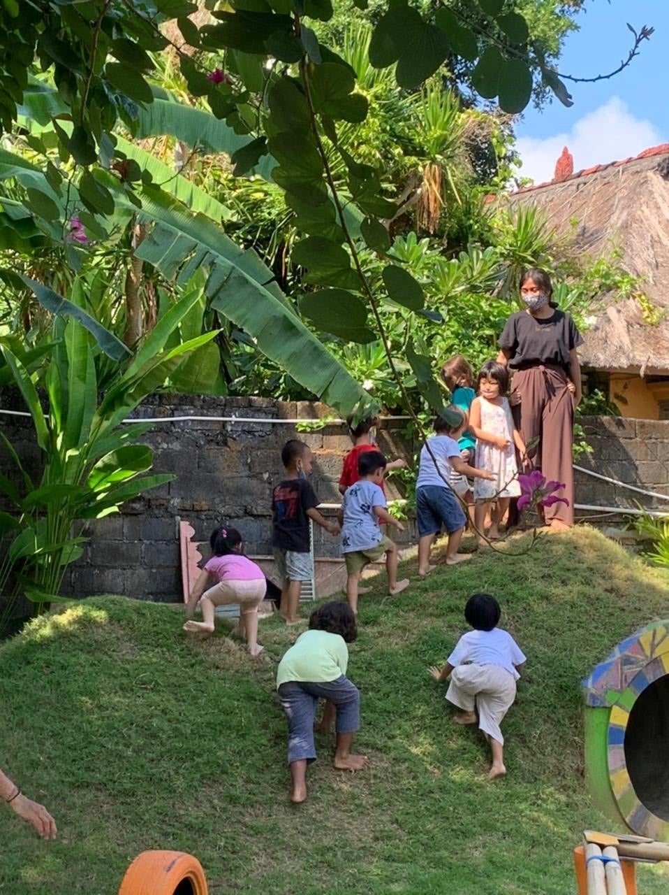 通常は多くの子どもたちが休暇にどこかに出かけてたり、外国籍の子どもたちも国に里帰りしている時期なのですが、今年は去年に引き続きバリ島で過ごさなかればならない家族がほとんどで、予想以上に外部の学校からも参加者も多く、7月からの新園児もコロナ禍前と同じくらいの数に戻ってきたと、喜ばしいことだと先生、スタッフ一同皆で喜んで、明るい雰囲気に沸いていたところ、先週3日から20日までのロックダウンの発令されました。