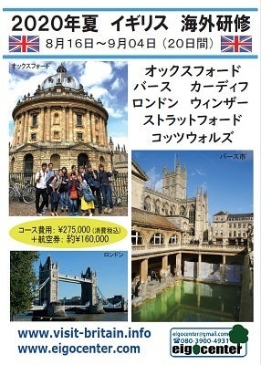 「Eigocenter」 の英国研修のホームページはこちら:www.visit-britain.info
