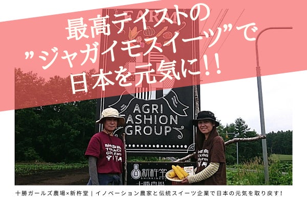 イノベーション農家十勝ガールズ農場と伝統スイーツ企業新杵堂がタッグを組み、最高テイストの「ジャガイモスイーツ」で日本の元気を取り戻したいという想いを実現させるため今回のクラウドファンディングを企画させていただきました。