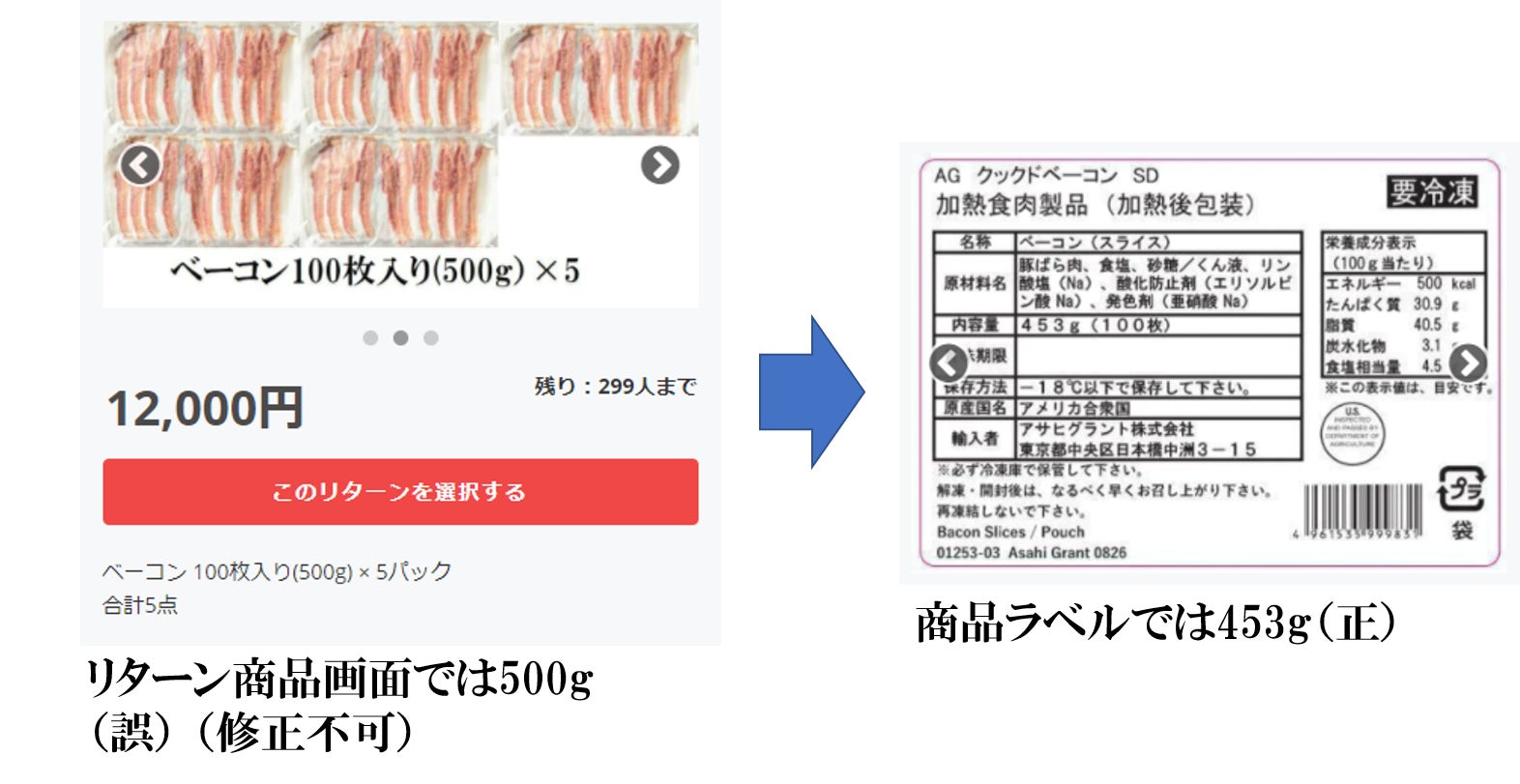 ベーコン内容量: 500g ⇒ 453g